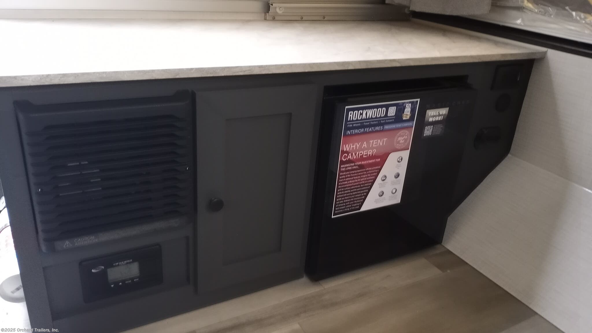 2025 Rockwood Freedom 1940FT pop-up camper. Two large beds! L-shaped dinette/lounge with table. 12v fridge. 100-watt solar panel. Air conditioning! Durable canvas with zippered panels and screens. Roof vent. Water heater. Power roof lift. Propane furnace. Call today for more info!