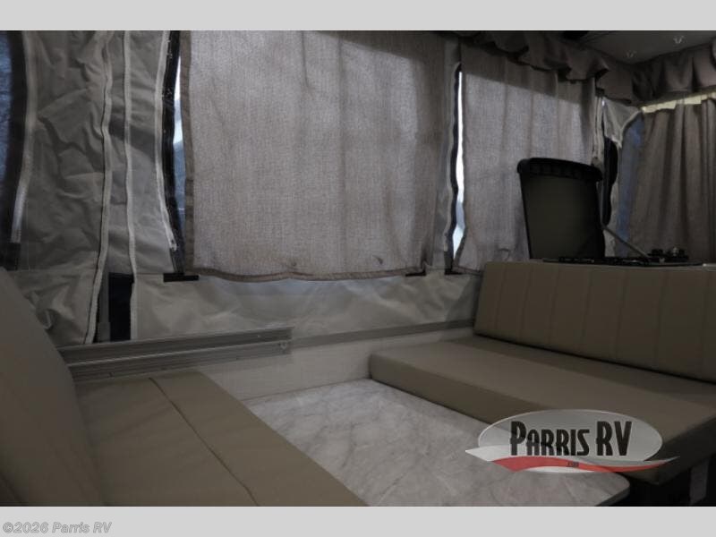 With any Rockwood Freedom Series by Forest River, you will enjoy added features to make each excursion one to remember. These folding pop-up campers feature a fiberglass laminated roof, wood plank flooring, and a Clay exterior with an alloy band. The leaf-spring axles, electric brakes, and balancing bead/nitrogen filled tires will make towing easier than ever, plus there are four stabilizer jacks with sand pads to help keep your unit secure. Each model also includes an awning with LED lighting outdoors, along with a one-piece screen door, two 20 lb. LP bottles, and a power roof lift to have you set up in no-time. Inside, the 15K under-bunk A/C and 20K BTU furnace will help keep you comfortable, and the Create-A-Breeze roof vent fan will keep the air moving!