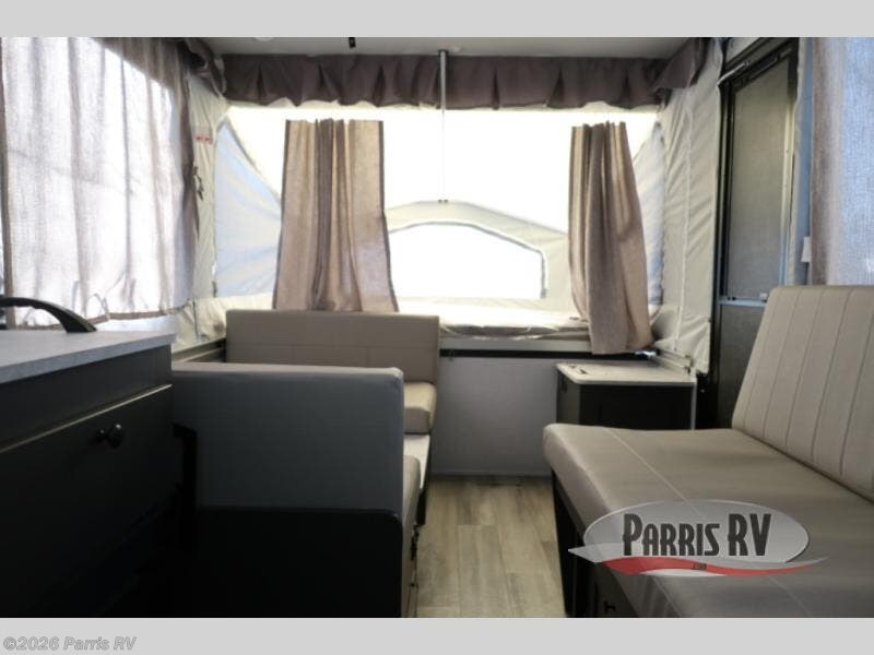 With any Rockwood Freedom Series by Forest River, you will enjoy added features to make each excursion one to remember. These folding pop-up campers feature a fiberglass laminated roof, wood plank flooring, and a Clay exterior with an alloy band. The leaf-spring axles, electric brakes, and balancing bead/nitrogen filled tires will make towing easier than ever, plus there are four stabilizer jacks with sand pads to help keep your unit secure. Each model also includes an awning with LED lighting outdoors, along with a one-piece screen door, two 20 lb. LP bottles, and a power roof lift to have you set up in no-time. Inside, the 15K under-bunk A/C and 20K BTU furnace will help keep you comfortable, and the Create-A-Breeze roof vent fan will keep the air moving!