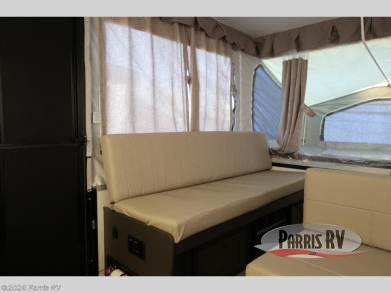 With any Rockwood Freedom Series by Forest River, you will enjoy added features to make each excursion one to remember. These folding pop-up campers feature a fiberglass laminated roof, wood plank flooring, and a Clay exterior with an alloy band. The leaf-spring axles, electric brakes, and balancing bead/nitrogen filled tires will make towing easier than ever, plus there are four stabilizer jacks with sand pads to help keep your unit secure. Each model also includes an awning with LED lighting outdoors, along with a one-piece screen door, two 20 lb. LP bottles, and a power roof lift to have you set up in no-time. Inside, the 15K under-bunk A/C and 20K BTU furnace will help keep you comfortable, and the Create-A-Breeze roof vent fan will keep the air moving!