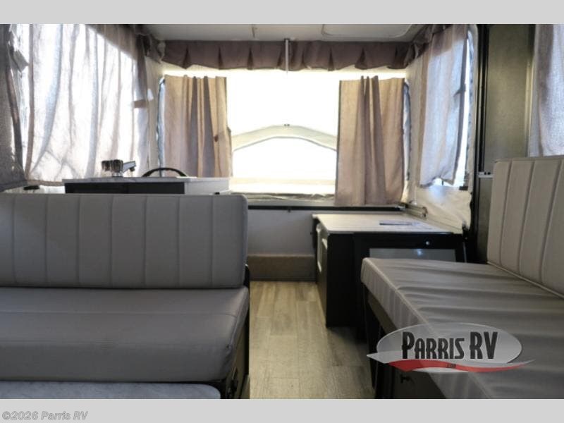 With any Rockwood Freedom Series by Forest River, you will enjoy added features to make each excursion one to remember. These folding pop-up campers feature a fiberglass laminated roof, wood plank flooring, and a Clay exterior with an alloy band. The leaf-spring axles, electric brakes, and balancing bead/nitrogen filled tires will make towing easier than ever, plus there are four stabilizer jacks with sand pads to help keep your unit secure. Each model also includes an awning with LED lighting outdoors, along with a one-piece screen door, two 20 lb. LP bottles, and a power roof lift to have you set up in no-time. Inside, the 15K under-bunk A/C and 20K BTU furnace will help keep you comfortable, and the Create-A-Breeze roof vent fan will keep the air moving!