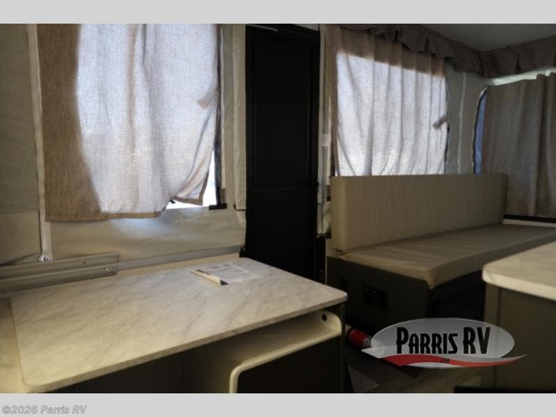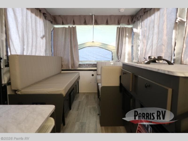 With any Rockwood Freedom Series by Forest River, you will enjoy added features to make each excursion one to remember. These folding pop-up campers feature a fiberglass laminated roof, wood plank flooring, and a Clay exterior with an alloy band. The leaf-spring axles, electric brakes, and balancing bead/nitrogen filled tires will make towing easier than ever, plus there are four stabilizer jacks with sand pads to help keep your unit secure. Each model also includes an awning with LED lighting outdoors, along with a one-piece screen door, two 20 lb. LP bottles, and a power roof lift to have you set up in no-time. Inside, the 15K under-bunk A/C and 20K BTU furnace will help keep you comfortable, and the Create-A-Breeze roof vent fan will keep the air moving!
