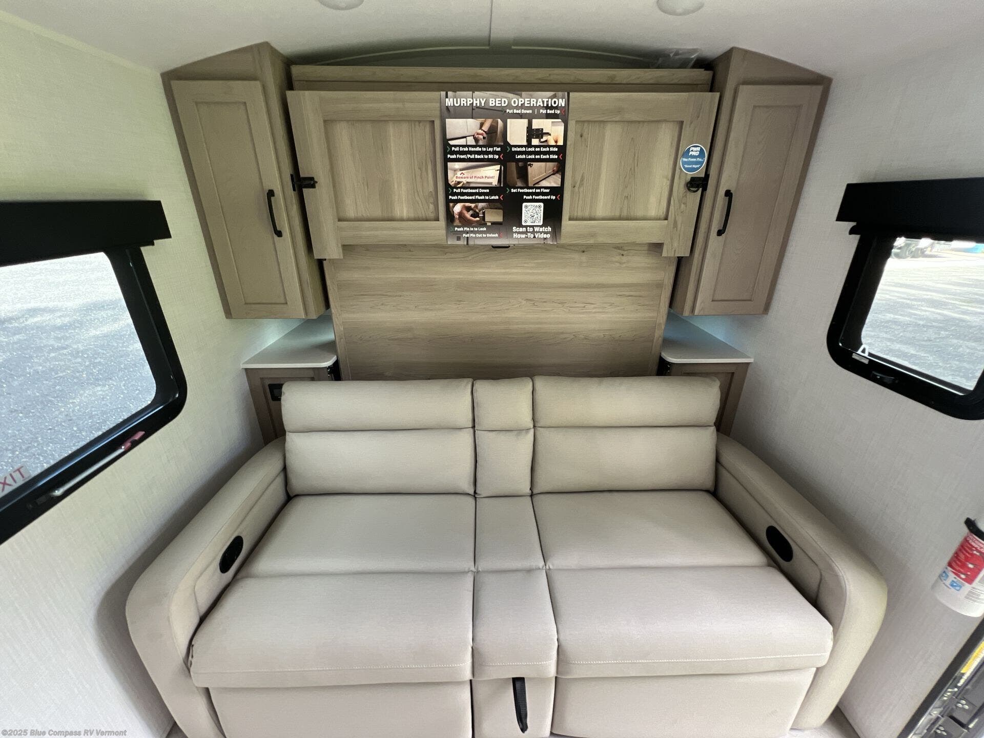 You will love how versatile this travel trailer is thanks to the Murphy bed up front. After you've had a great night's rest, just fold it up to relax on the 72" sofa. This will give the chef more space in the morning to prepare breakfast on the three burner cooktop or in the microwave oven. There is a 32" booth dinette to dine at, or you may just want to take your plate outdoors under the 14' power awning. The full rear bath includes a large linen closet to store clean towels and there is a Showermiser Water Saver you are sure to appreciate. You will appreciate a pass-through storage, plus additional exterior storage so you can bring along hiking gear, water tubes, and fishing poles! The optional Power Package available on this model includes three 200W solar panels, an 11,000 BTU Coleman Mach soft start A/C, two smart remotes, and more off-grid features!