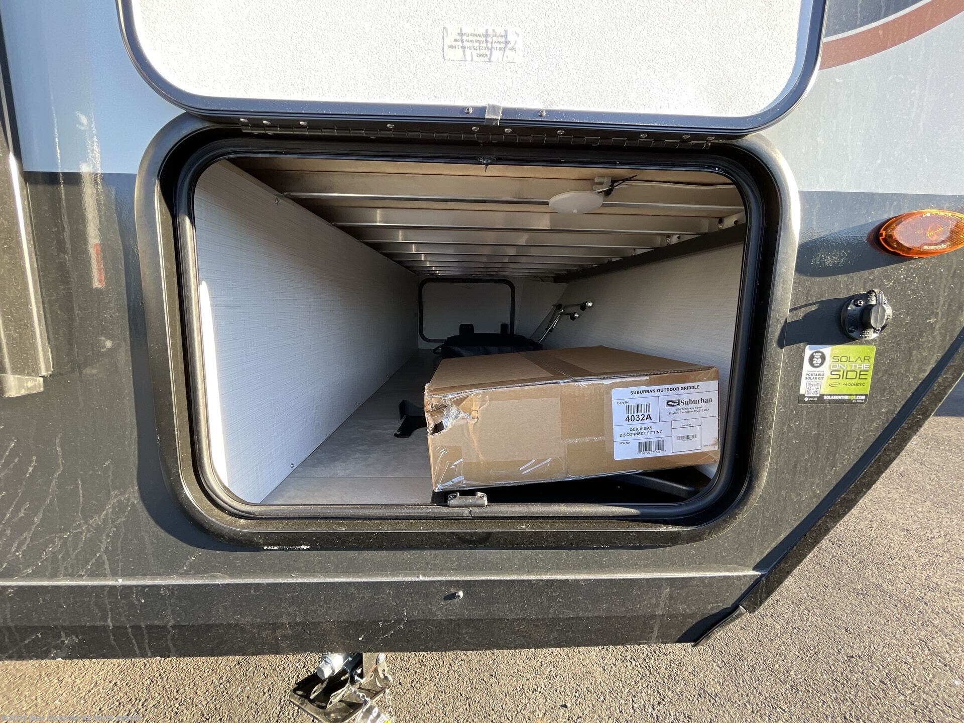 You're going to love camping with your family or friends in this spacious bunk model! The bunk beds will be perfect for little ones, while you take the front full-size bed. There is also a 44" booth dinette within the slide out for additional sleeping and seating space. The kitchen includes everything the chef will need to prepare meals each day, including a recessed cooktop, microwave oven, and a 12V refrigerator for perishables. If the weather is nice, you may just find the chef outdoors cooking on the outside griddle under the 14' power awning. And check out the exterior bike door that will be perfect for bikes, luggage, or extra camp gear. The optional Power Package available on this model includes three 200W solar panels, a 460 Ah Mastervolt MLI lithium-ion battery, two smart remotes, and more off-grid features!