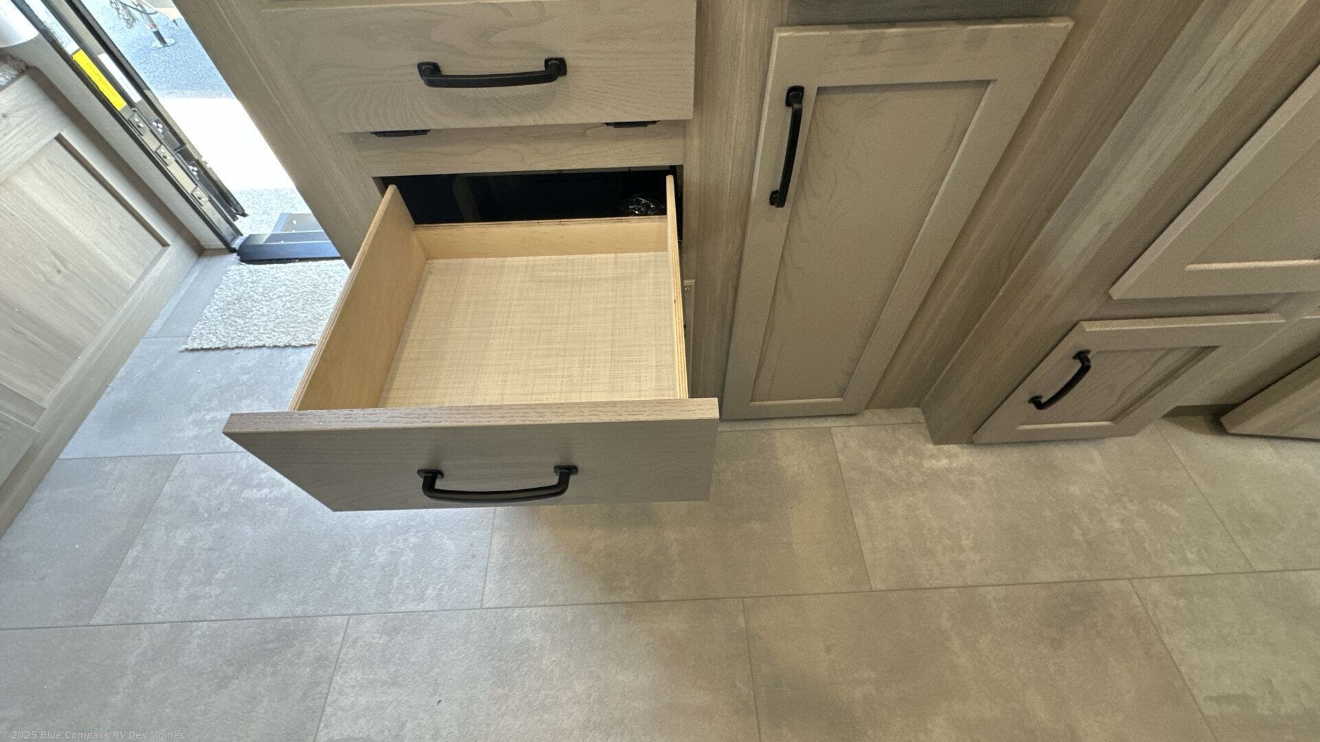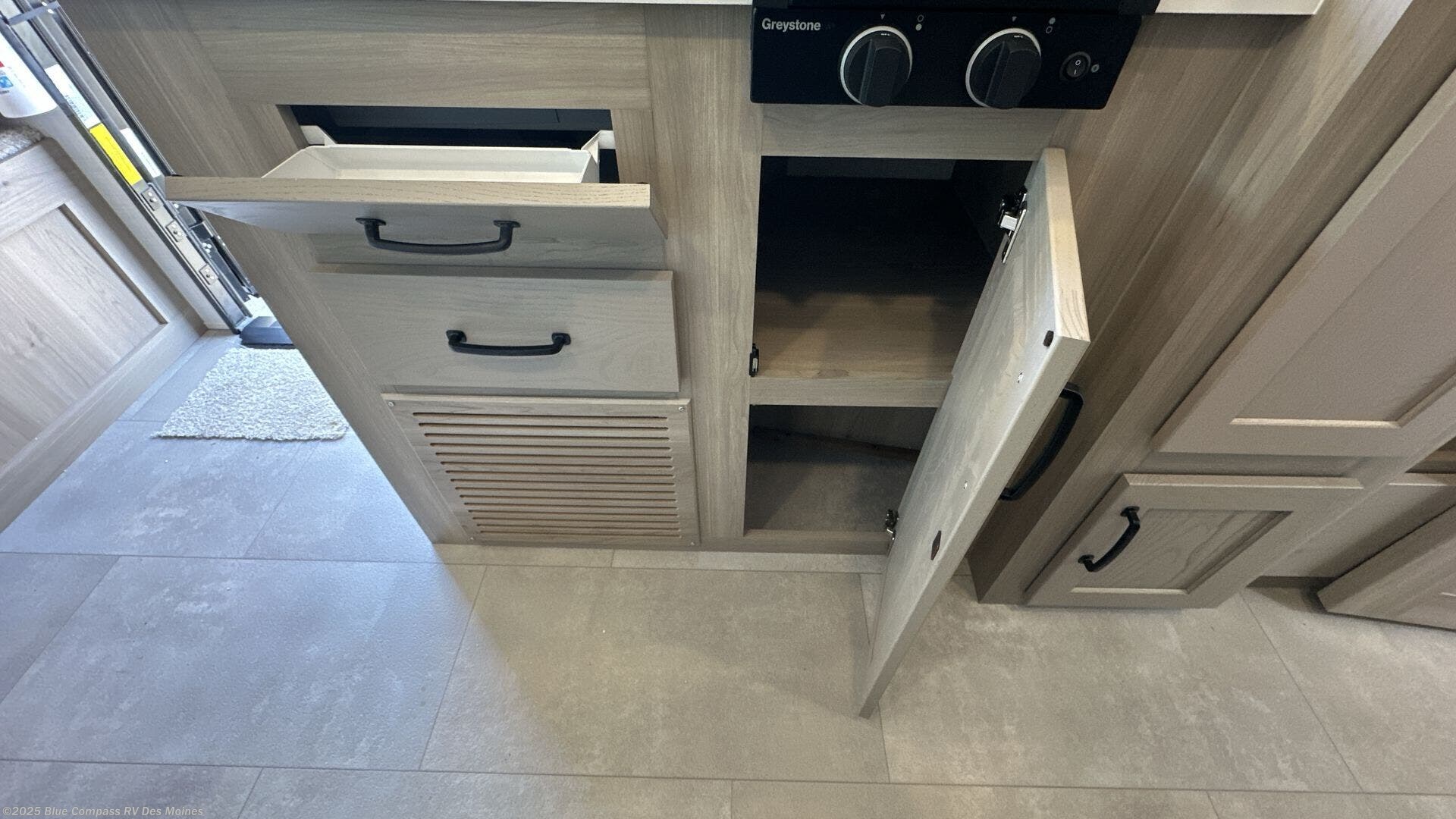 You're going to love camping with your family or friends in this spacious bunk model! The bunk beds will be perfect for little ones, while you take the front full-size bed. There is also a 44" booth dinette within the slide out for additional sleeping and seating space. The kitchen includes everything the chef will need to prepare meals each day, including a recessed cooktop, microwave oven, and a 12V refrigerator for perishables. If the weather is nice, you may just find the chef outdoors cooking on the outside griddle under the 14' power awning. And check out the exterior bike door that will be perfect for bikes, luggage, or extra camp gear. The optional Power Package available on this model includes three 200W solar panels, a 460 Ah Mastervolt MLI lithium-ion battery, two smart remotes, and more off-grid features!