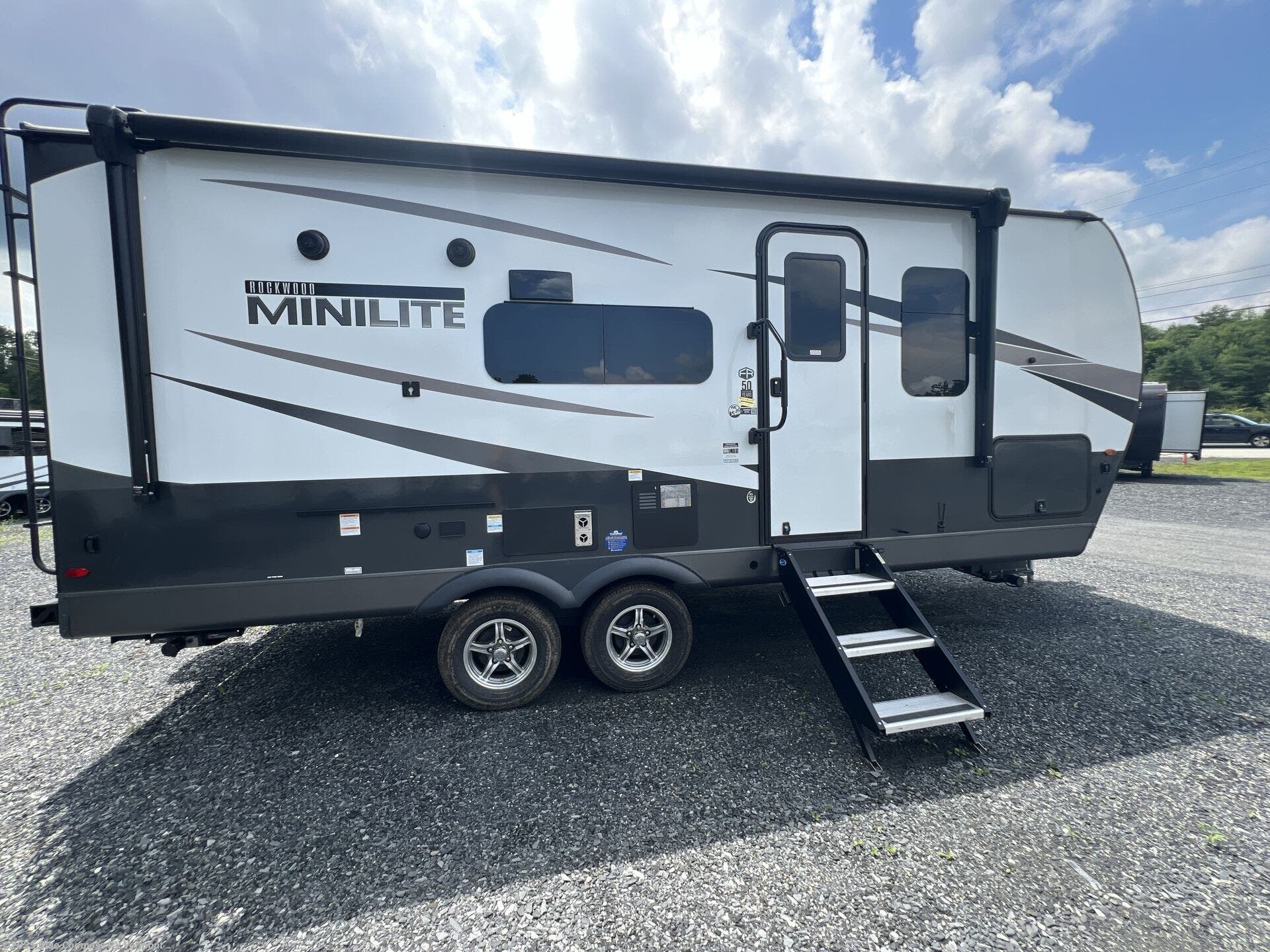 Each Rockwood Mini Lite travel trailer by Forest River is constructed with a fully laminated one-piece walkable roof, sleek frameless windows, and a six-sided full aluminum frame for strength and durability. The 12V thermostatically controlled heated tanks, plus radiant foil in the underbelly and slide out floors will allow you to camp well into the colder months, and the 200W roof solar panel will be perfect for a little off-gridding. Each model includes solid surface kitchen countertops, solid wood cabinet doors, night roller shades, plus many more interior features. Having an AIR 360+ omnidirectional antenna with WiFi prep on board gives you the option to get some work done if it's needed, and the power tongue jack provides hassle-free set up, so you can enjoy more time relaxing!