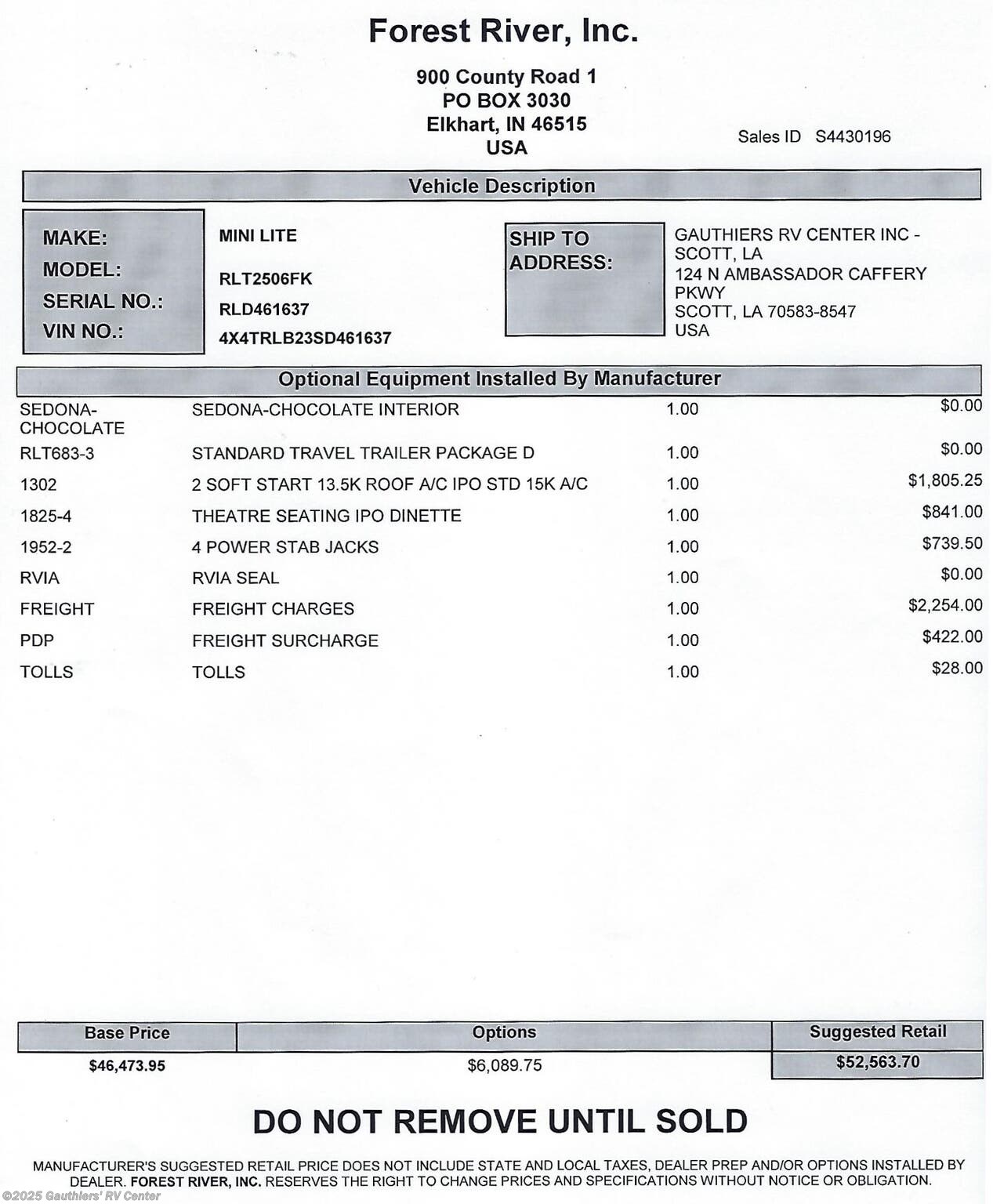 - MSRP $52,563.70