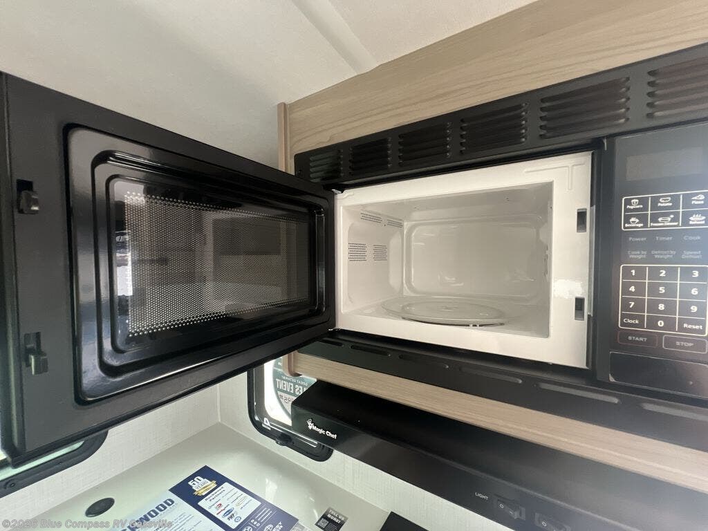 Each Rockwood Mini Lite travel trailer by Forest River is constructed with a fully laminated one-piece walkable roof, sleek frameless windows, and a six-sided full aluminum frame for strength and durability. The 12V thermostatically controlled heated tanks, plus radiant foil in the underbelly and slide out floors will allow you to camp well into the colder months, and the 200W roof solar panel will be perfect for a little off-gridding. Each model includes solid surface kitchen countertops, solid wood cabinet doors, night roller shades, plus many more interior features. Having an AIR 360+ omnidirectional antenna with WiFi prep on board gives you the option to get some work done if it's needed, and the power tongue jack provides hassle-free set up, so you can enjoy more time relaxing!
