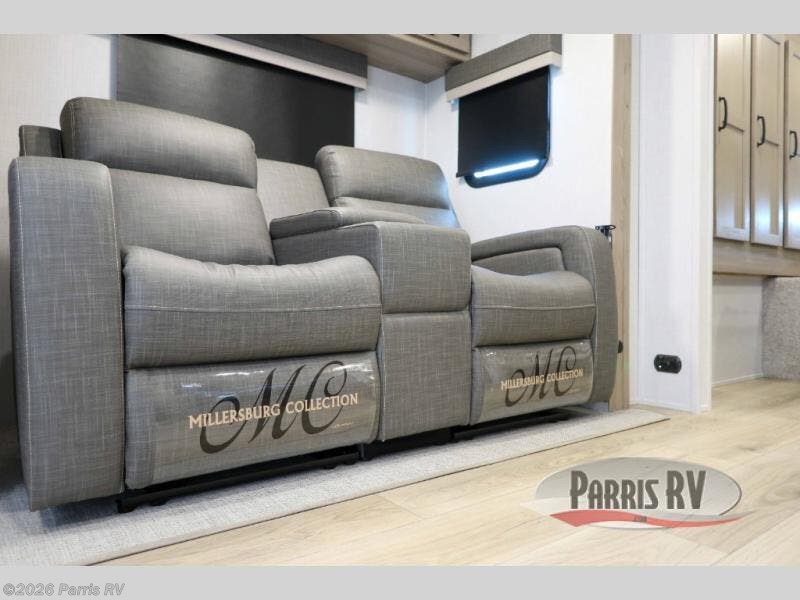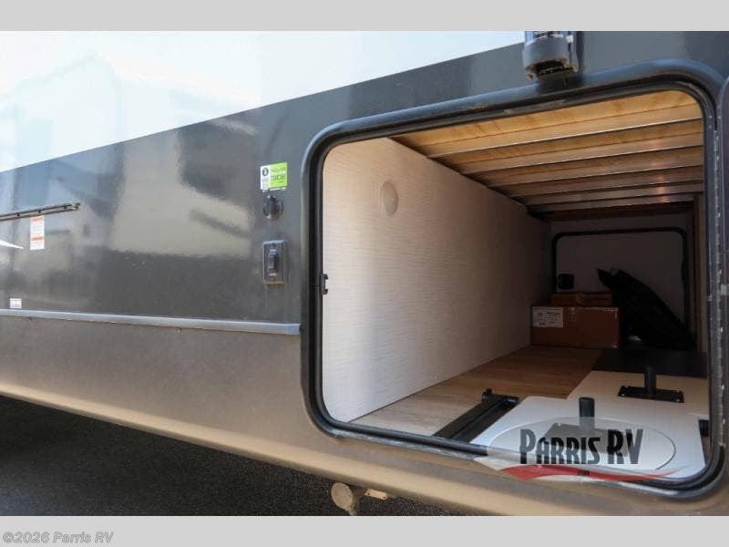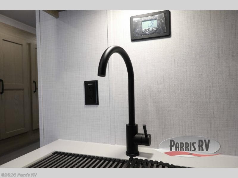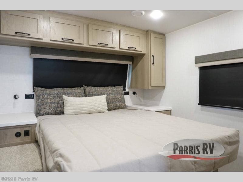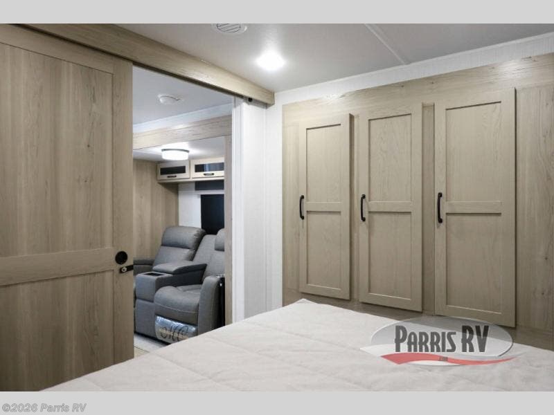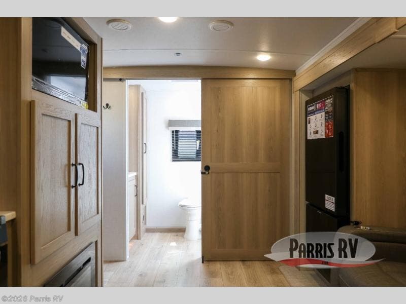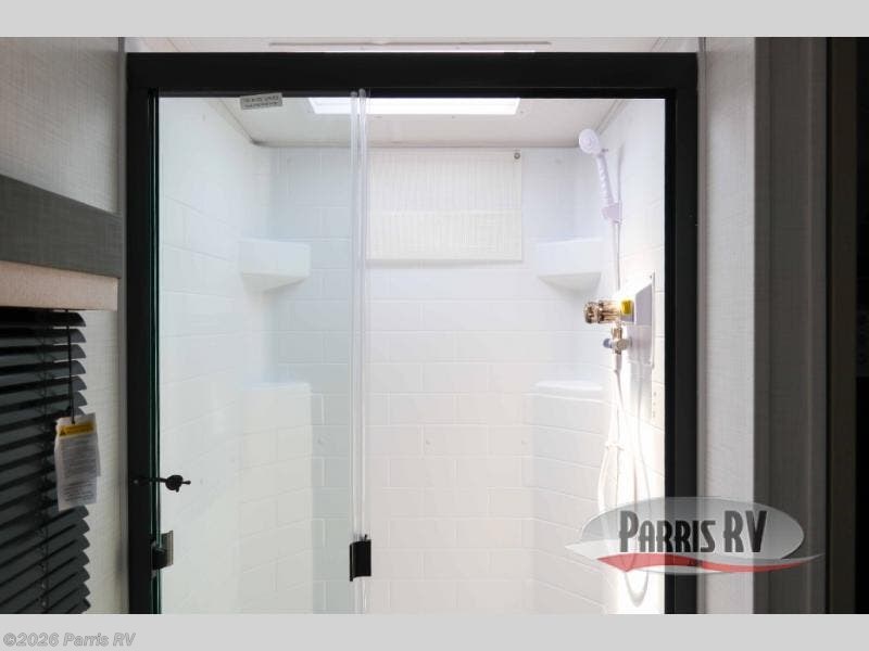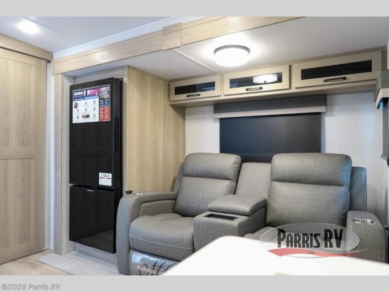 Camping trips to the lake just got sweeter with this dual slide out travel trailer in tow! Once you arrive, unload your gear from the exterior drop-frame pass-through storage, then start lunch on the exterior griddle. If you need a rest after traveling all day, the RV queen bed in the front bedroom is sure to give you comfort, or you can relax on the theater seating. The fireplace and entertainment center with a 32" TV will make this space feel just like home, and check out the spacious full rear bath for added privacy. This model also includes an entryway closet/pantry for jackets, shoes, and food!