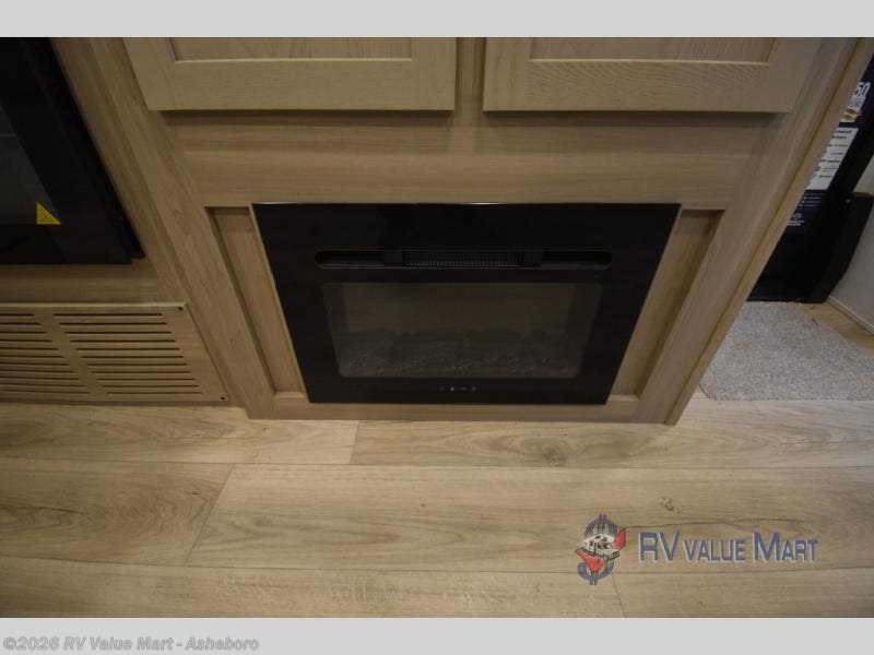 Camping trips to the lake just got sweeter with this dual slide out travel trailer in tow! Once you arrive, unload your gear from the exterior drop-frame pass-through storage, then start lunch on the exterior griddle. If you need a rest after traveling all day, the RV queen bed in the front bedroom is sure to give you comfort, or you can relax on the theater seating. The fireplace and entertainment center with a 32" TV will make this space feel just like home, and check out the spacious full rear bath for added privacy. This model also includes an entryway closet/pantry for jackets, shoes, and food!