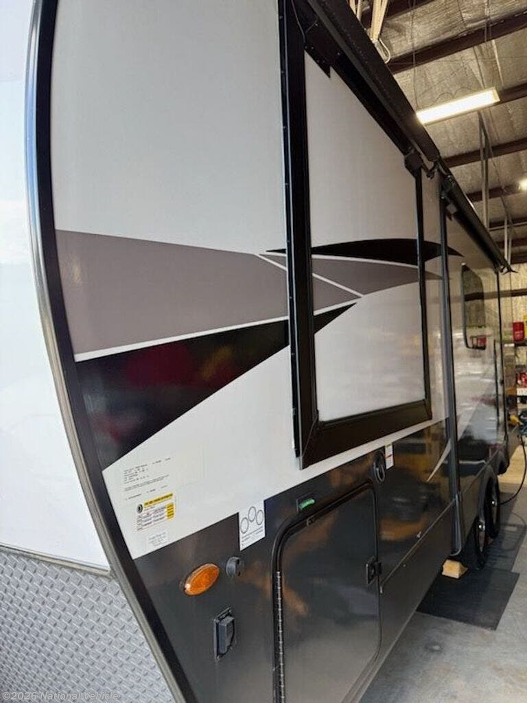 Built for comfort, convenience, and off-grid capability, this unit comes with lifetime exterior ceramic coating warranty and an optional 4-year transferrable platinum warranty. It?s fully equipped for family or couple getaways with two slide-outs with toppers, a power awning, solid surface countertops, full kitchen, theatre seating, and a queen front bed with storage underneath.