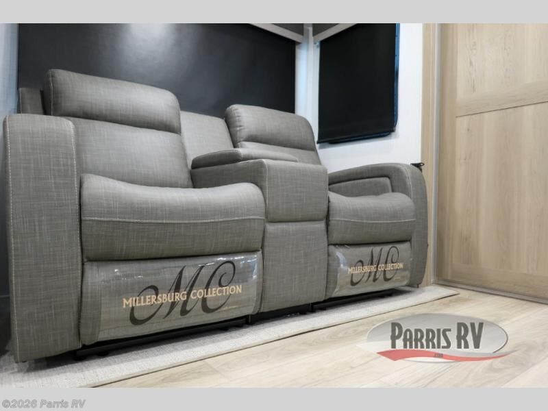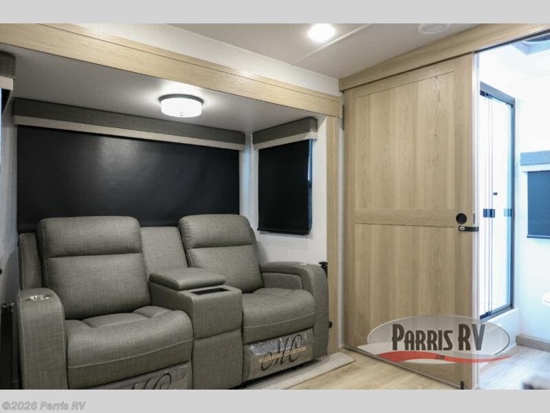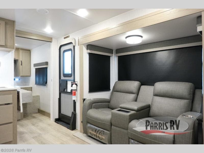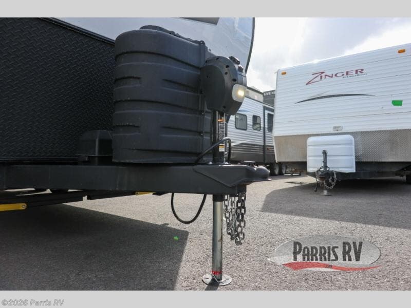 Pick your favorite campground to take this travel trailer to! Once you arrive, unload your gear from the exterior drop-frame pass-through storage, then start lunch on either the exterior griddle or the three burner cooktop inside. If you need a rest after traveling all day, the RV queen bed with flip-up storage in the front bedroom is sure to give you comfort, or you can relax on the 67" theater seating. The entertainment center will make this space feel just like home, and check out the spacious full rear bath for added privacy. This model also includes a 20' power awning to relax underneath rain or shine!