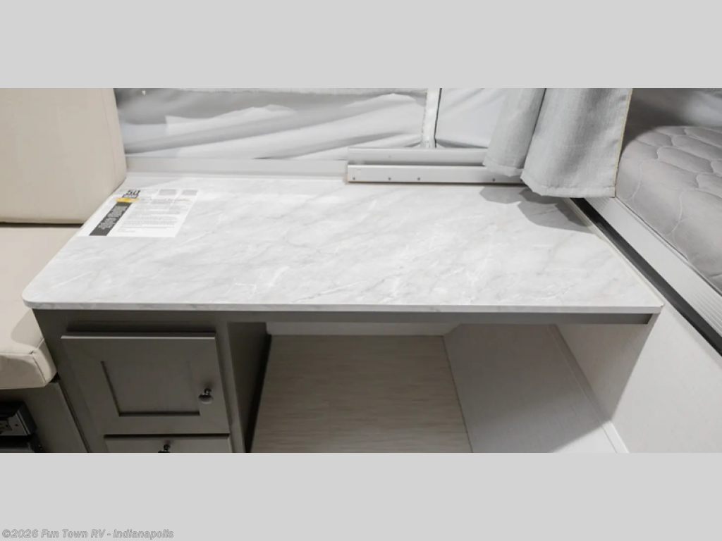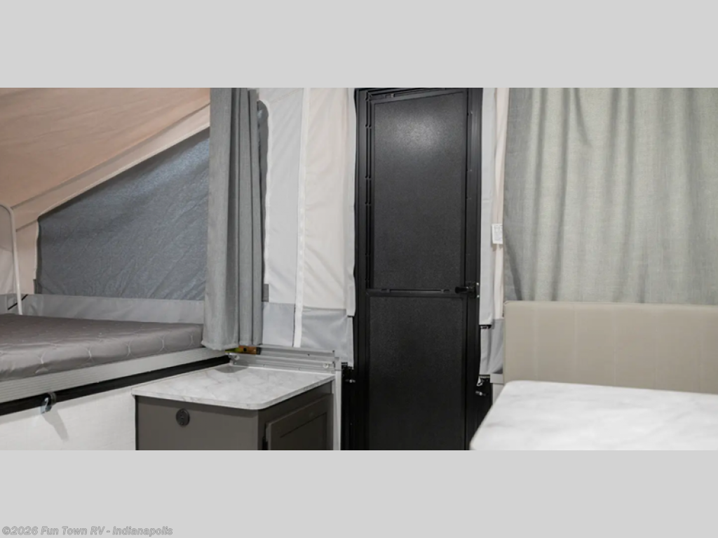 With any Rockwood OTG (Off The Ground) folding pop-up camper by Forest River, you will enjoy a more simple approach to outdoor fun. If you're a regular tent camper, but are looking for a little more comfort, then take a look at these easy-to-tow models! There are electric brakes, balancing bead filled tires, and leaf spring axles that provide that easy towing, and the alloy fiberglass exterior is durable. A one-piece screen door also comes standard so you can let fresh air in, while keeping bugs out, and the LED interior lights will be an added benefit you didn't have while tent camping. Each model also includes residential style cabinet doors, wood look flooring, and an Andover Sable wood interior for a more outdoorsy feel!