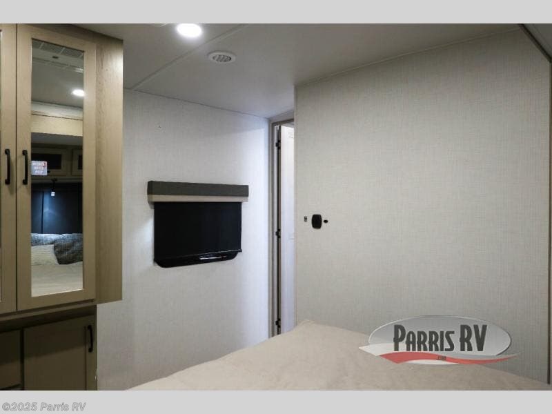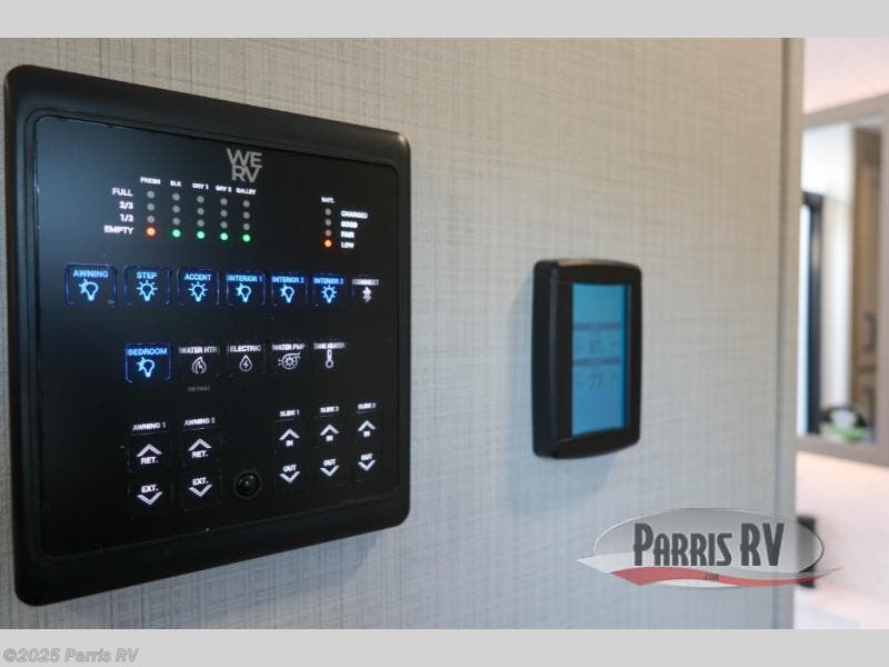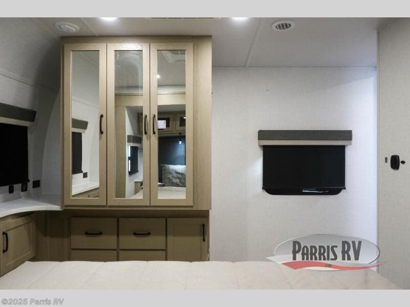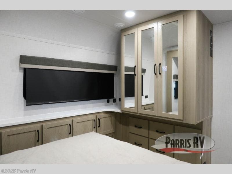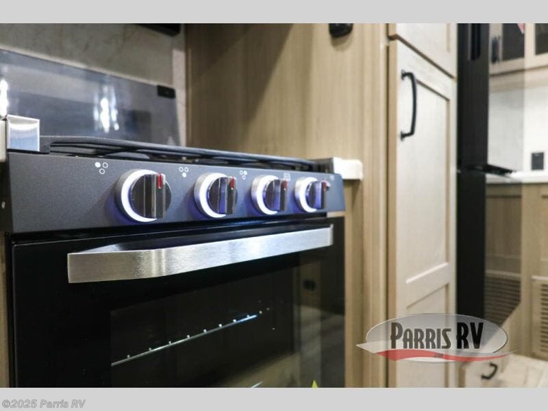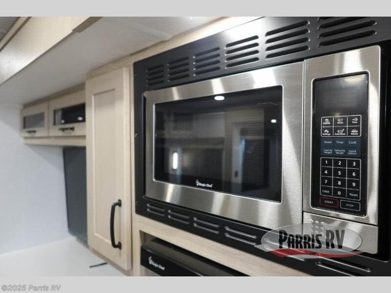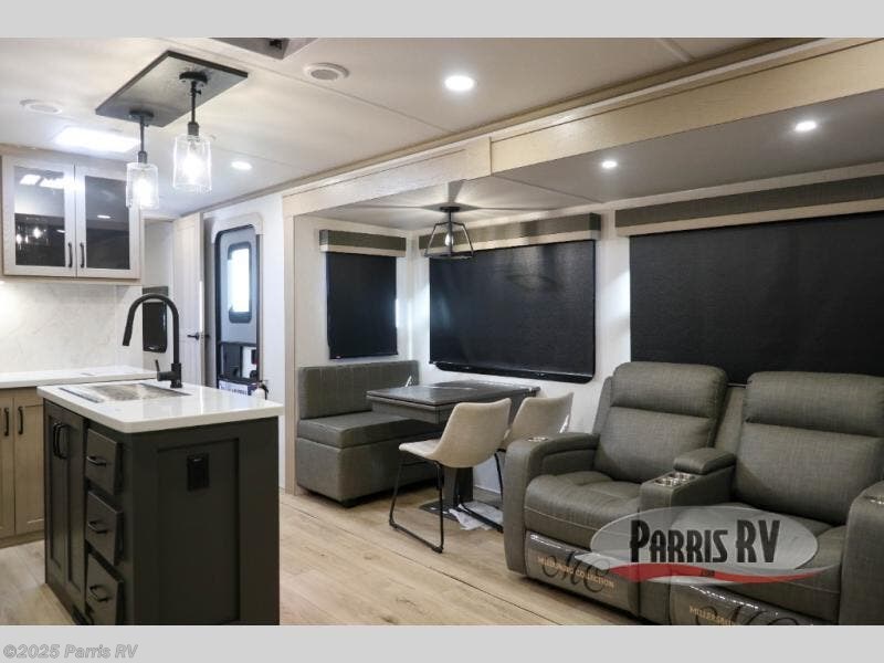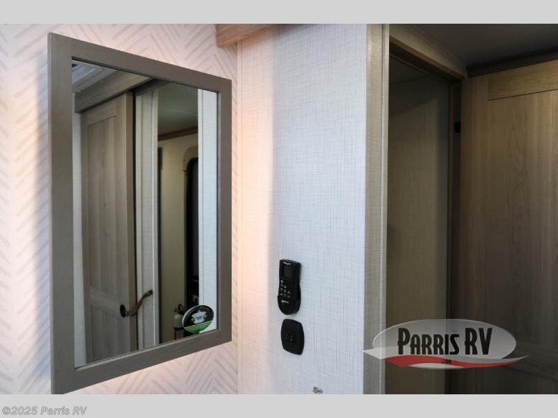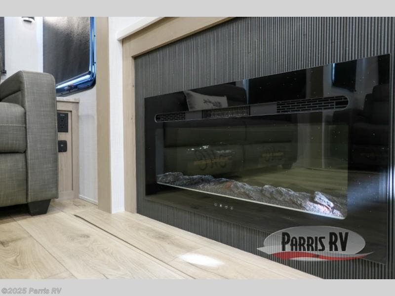 You're going to love the amount of natural light in this model with large windows in the back and the door side. The chef of the group will love the kitchen island, and there is tons of storage space for dishes, food, and knickknacks. The entertainment center with a Smart TV will allow you to watch movies at night, or you may just find yourselves outside under the two power awnings with LED lights. There is also an outside griddle here to cook pancakes in the morning. The king bed is sure to bring comfort, and you'll appreciate the large wardrobe to keep your clothes tidy. There is even washer and dryer prep if you choose to go full-time!