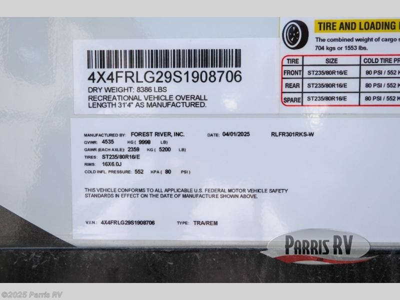 2025 Forest River Rockwood Signature R301RKS Specifications