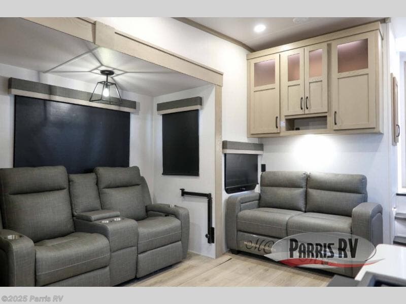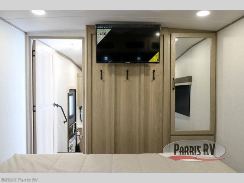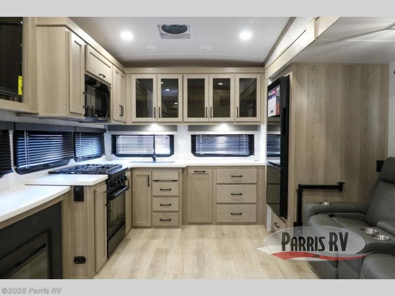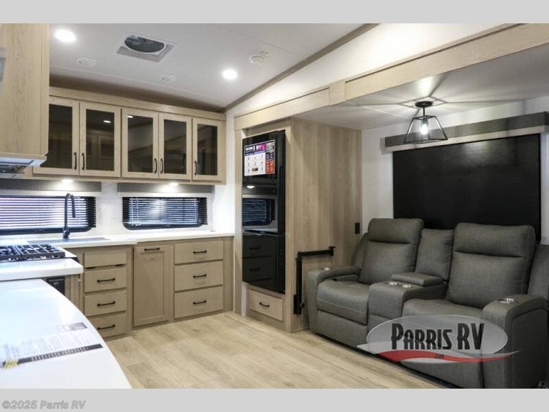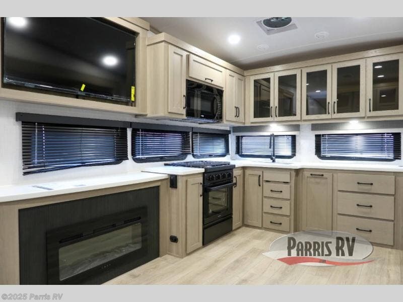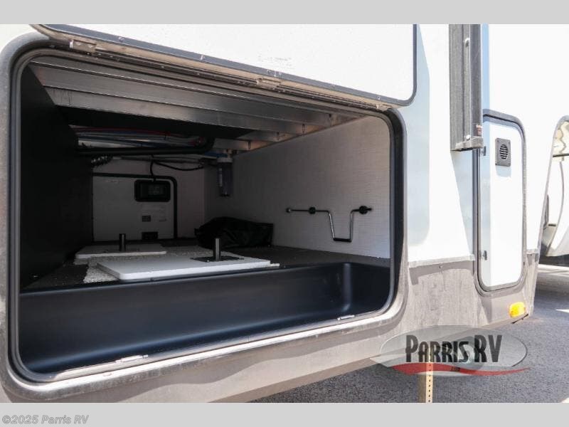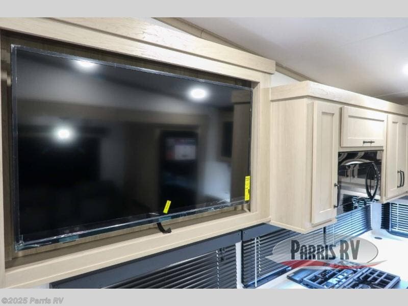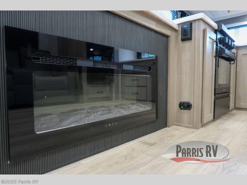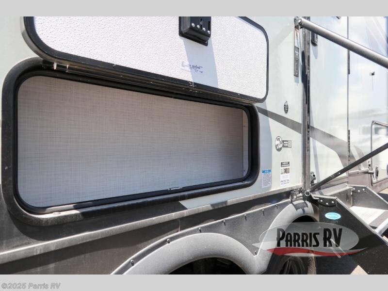 Why not have enough space for all your RVing friends to visit when you camp? This RV offers the perfect living and kitchen area with a large slide giving everyone more floor space, plus there is a king U-shaped dinette and a hide-a-bed sofa to sit on, a fireplace to enjoy and a Smart TV to watch a game or movie together. The cook will love the rear kitchen with extra counter space along a side wall to leave all the snacks and treats for everyone. You might even take everyone outside to enjoy the 21' power awning that offers an outdoor living area with some protection and LED lighting; just grab your camping chairs from the pass-through storage. At night, you can retire to the front bedroom with a queen bed, a spacious wardrobe, plus a TV option if you enjoy movies in bed!