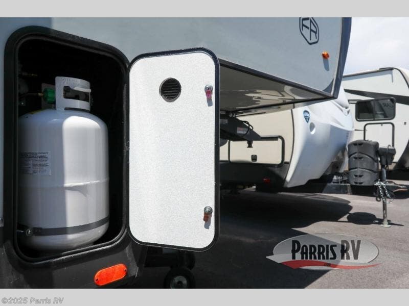 With any Rockwood Signature fifth wheel or travel trailer by Forest River RV, you will enjoy superior construction that includes laminated white fiberglass sidewalls, a radius roof with vaulted interior ceilings, plus radiant foil insulation and an enclosed underbelly for use in all types of weather. Some convenient exterior features include Keyed Alike locks, a rear ladder, a 200W solar panel, and a tire pressure monitor system with a monitor for added safety. The interior offers a One Touch OneControl panel with WeRV app control, for lights, awning, slides, water heater and more, and the Air 360+ omnidirectional antenna with WiFi prep lets you work while away from home if needed. You will also appreciate the interior vaulted ceilings, residential soft close doors and drawers, solid surface kitchen countertops, and designer kitchen backsplash!