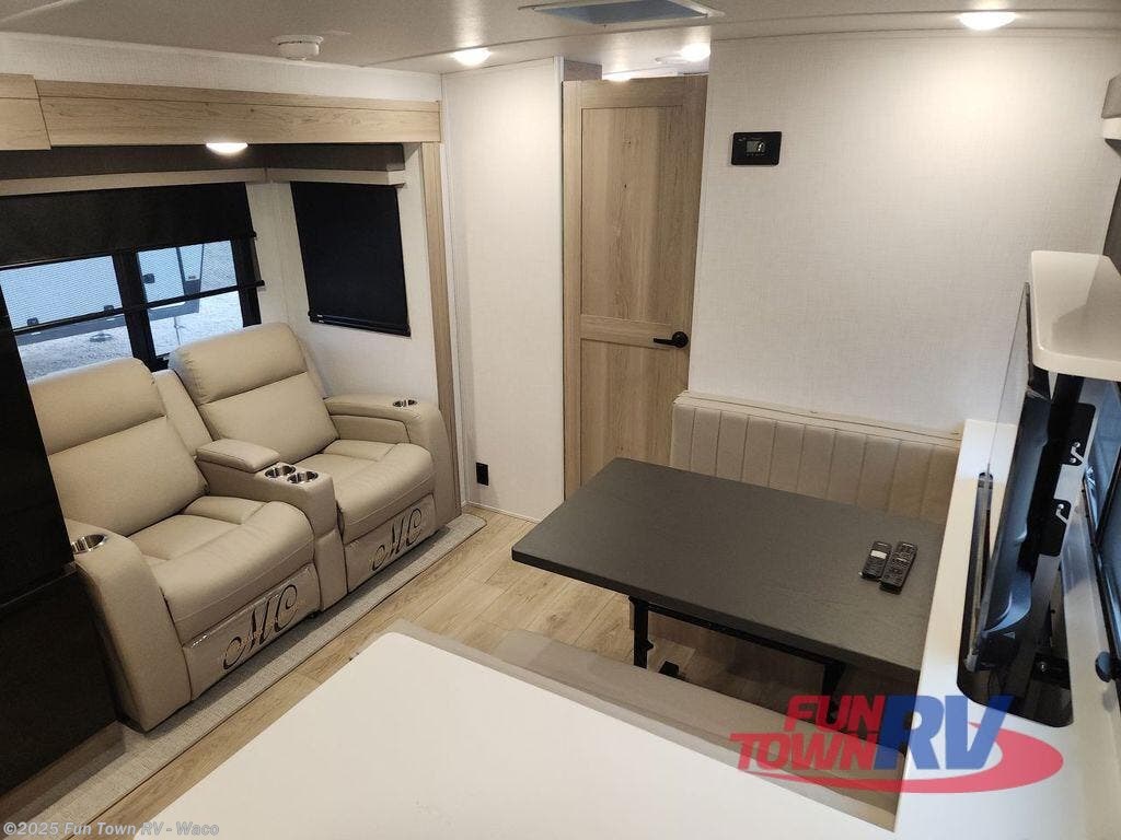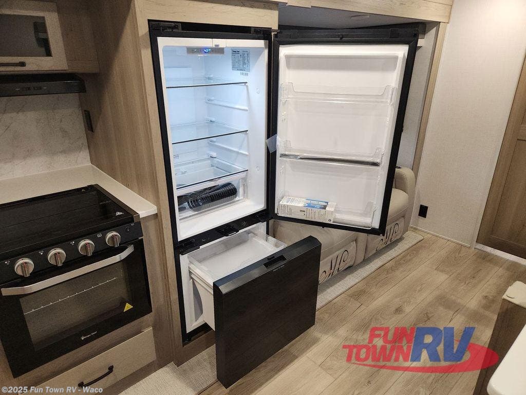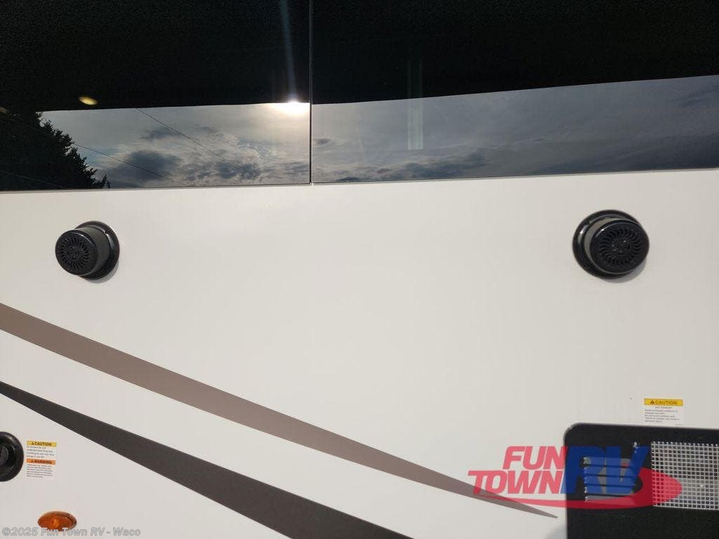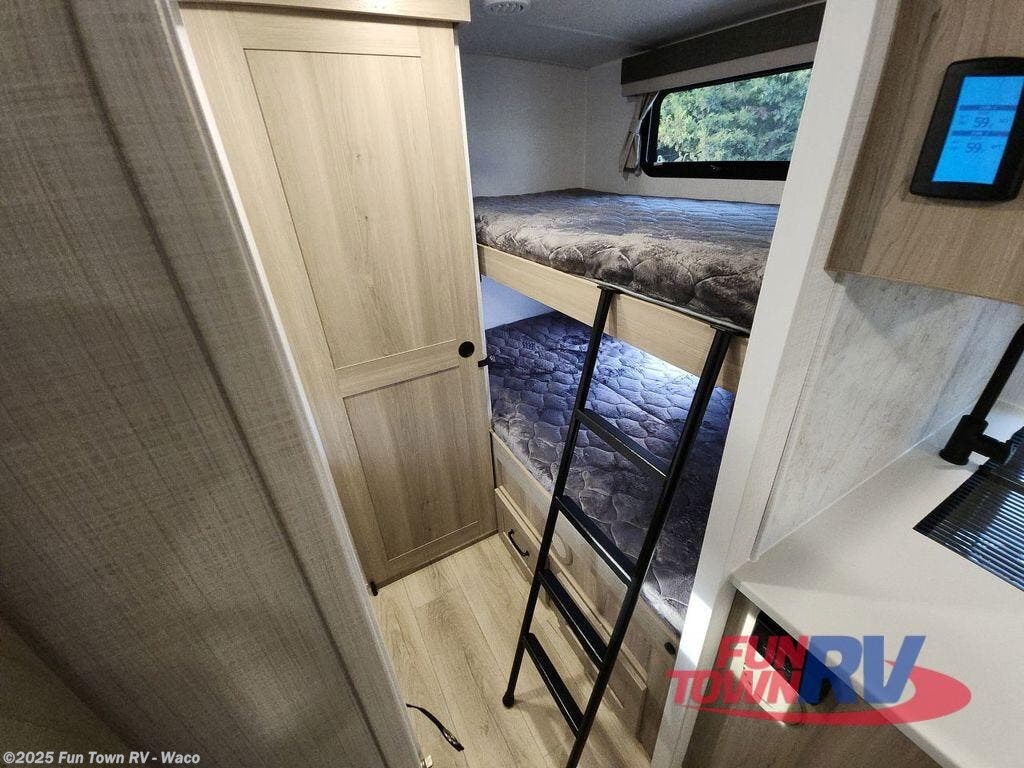 If you've been searching for a full-featured travel trailer, this is the one! Not only will you enjoy your own space up front in the master bedroom, but your guests can claim the rear bunkhouse suite all to themselves. There are two bunks with storage here, along with a desk, and a half bath for convenience. Your crew can meet in the middle living area on the theater seat or booth dinette. There is also a 39" TV here for movie nights! The chef can choose to cook indoors on the three burner range, or head outdoors to use the exterior griddle. A full walk-thru bath is sure to come in handy after a day at the lake, and did we mention this unit has dual entry doors?!