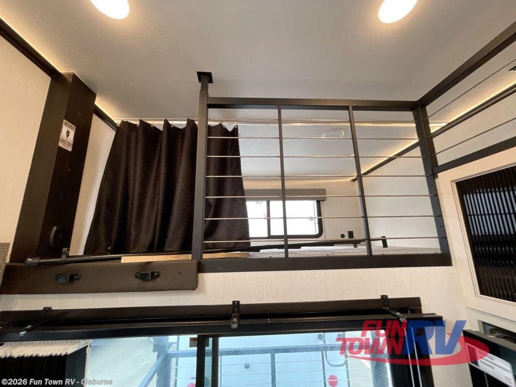 Whether you're weekend warriors or going full-time, this fifth wheel is sure to bring many happy days! The rear deck provides a place to relax in the evenings, and there is an overhead loft above here to use as storage or sleeping space. Once you head through the sliding patio doors, you can make dinner in the full kitchen before relaxing in the middle living room on the sectional sofa with an ottoman. There is also a table with chairs if game night is in order! The full bath includes a spacious shower with a seat for added comfort, and the camper king bed slide out in the bedroom will give you plenty of space to stretch out at night. You'll also appreciate the dresser and wardrobe to keep your space tidy, plus there is washer and dryer prep if you want to add those appliances!