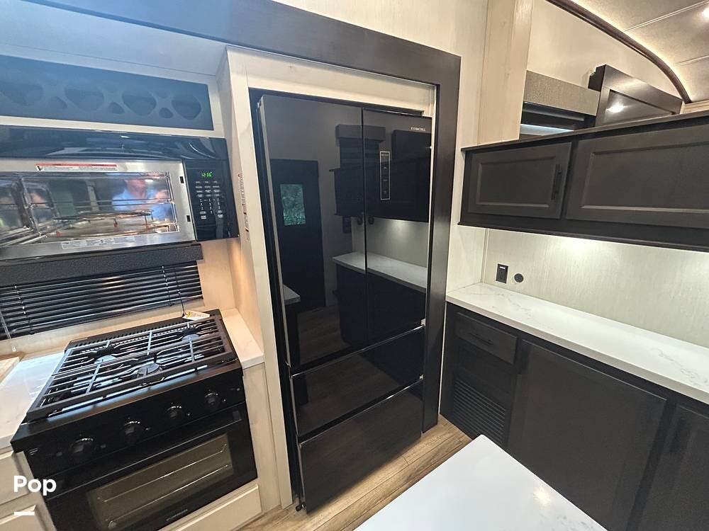 Two powered retractable awnings, an auto-leveling system, and five slides offer an expansive living space that feels open and inviting.