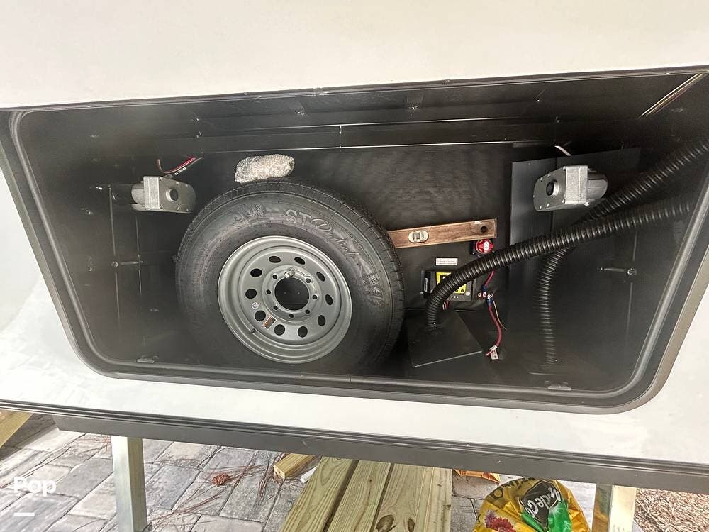 This unit also features a factory-installed 100-watt solar panel on the roof, designed to charge the camper's battery.