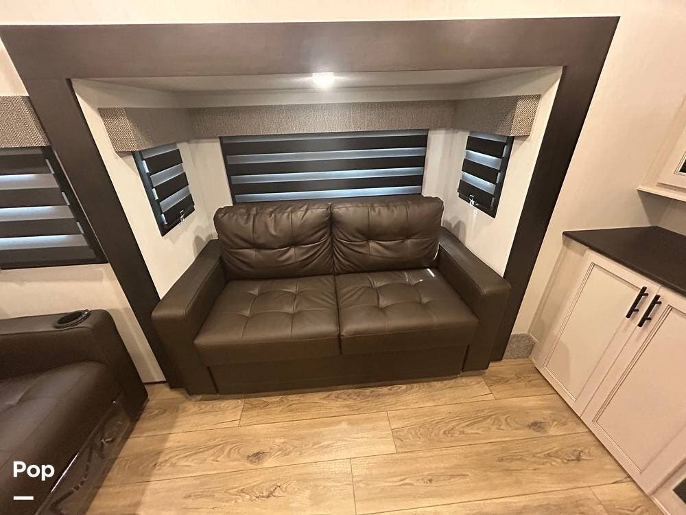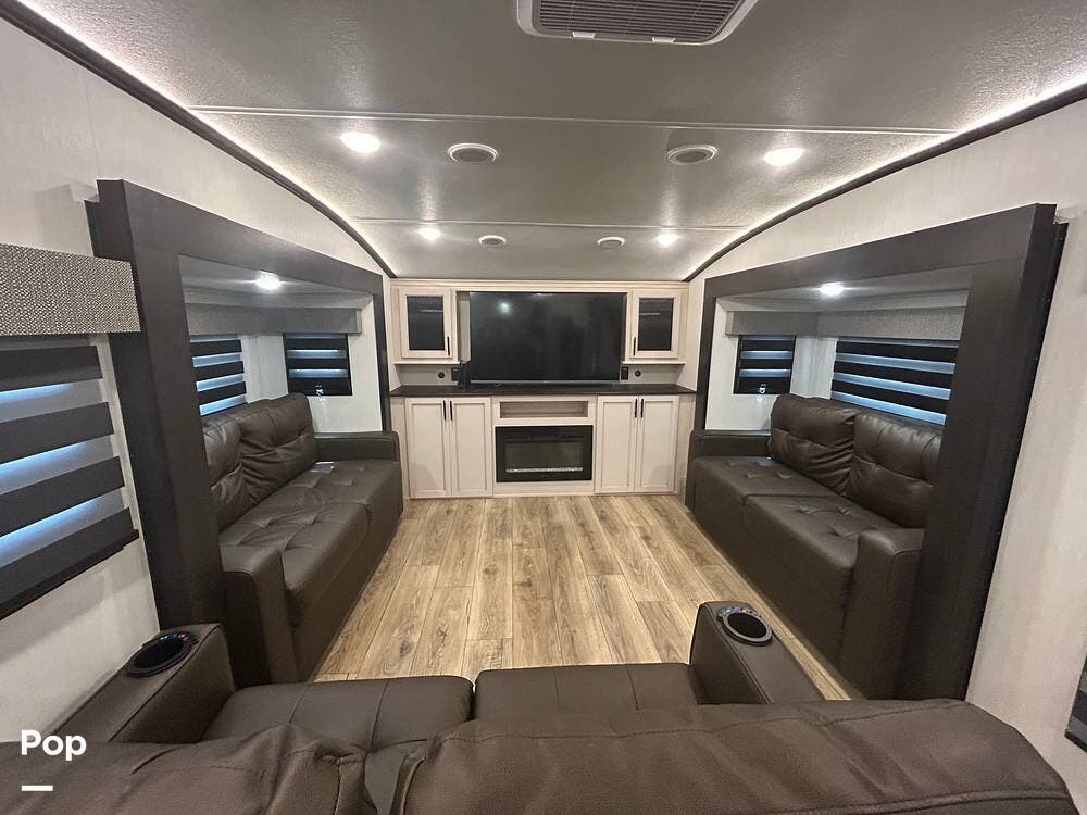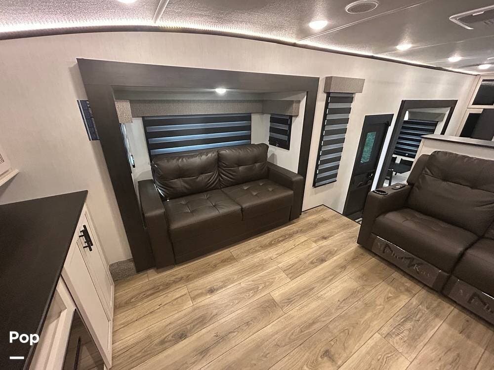Experience the pinnacle of luxury and comfort with the 2025 Forest River Sabre 37FLH. This fifth wheel is offering an impressive front living area with ample seating, including two tri-fold sofas.