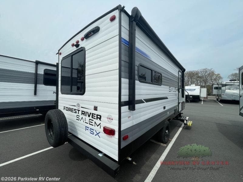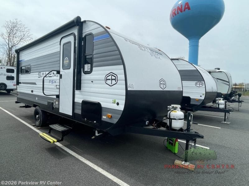 The Forest River Salem FSX travel trailers and toy hauler travel trailers are ultra comfortable and lightweight, perfect for first time or seasoned campers alike! You will love how easy it will be to relax with residential features that will make your space feel just like home, and the durable construction means you can enjoy your RV for years to come. There are a wide variety of floorplans to choose from, including couple's trailers, bunk models, and toy haulers, all with full bath and kitchen amenities and plenty of storage for all your gear!