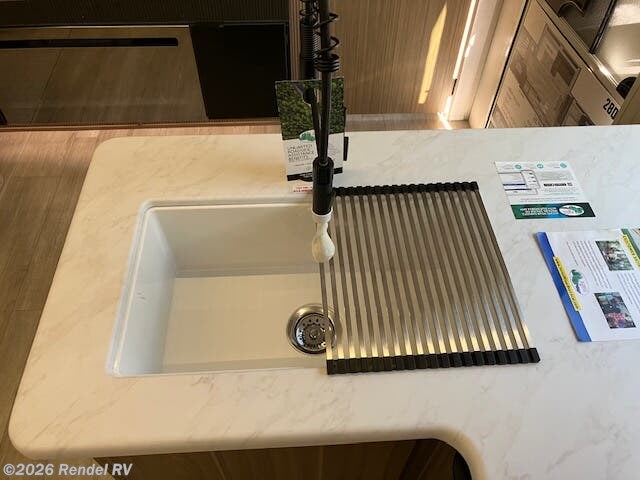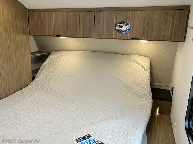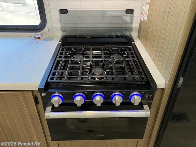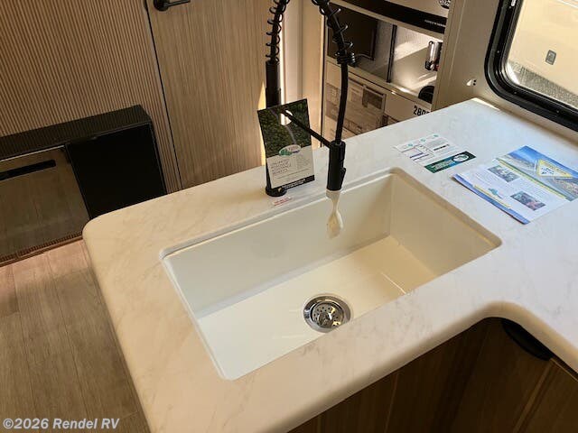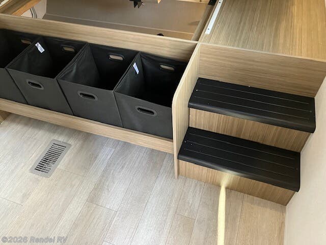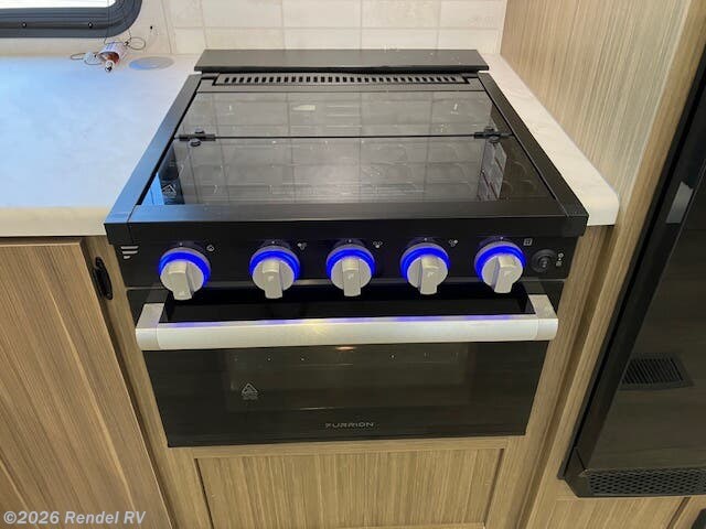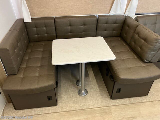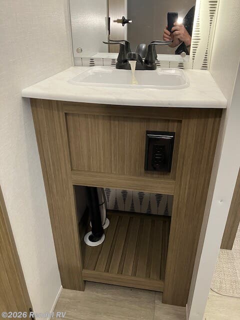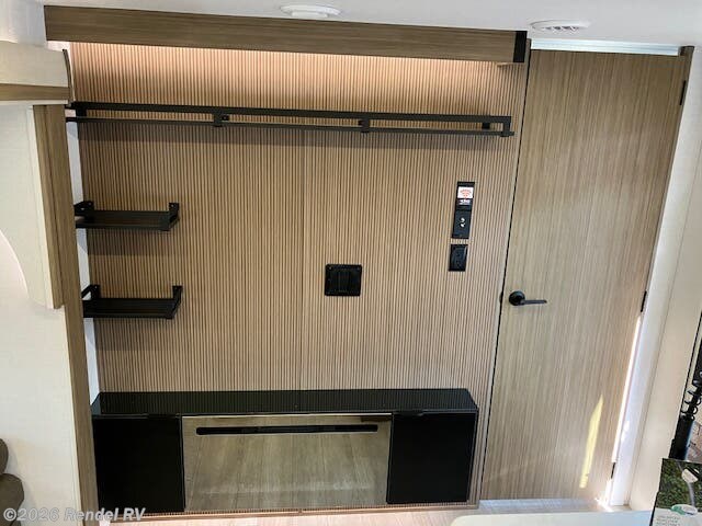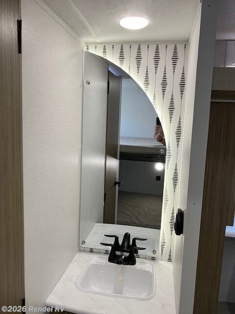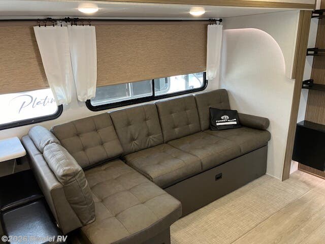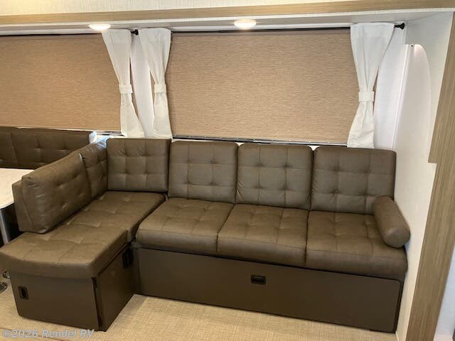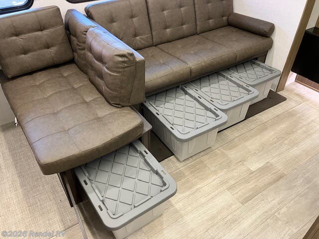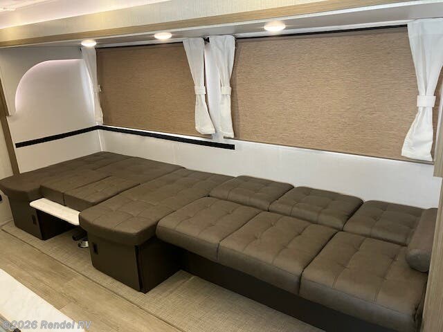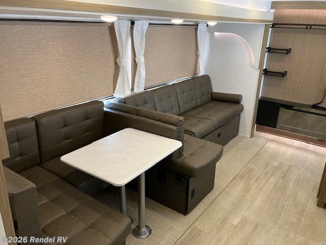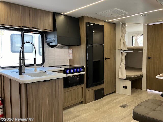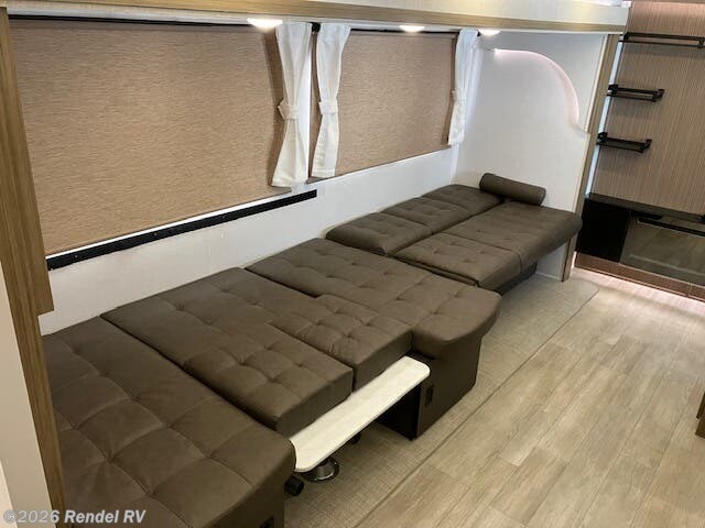 Culinary enthusiasts will fall in love with the integrated kitchen features, which include a microwave, oven, and stove top burner, all housed in an expanded layout that includes a walk-in pantry. The stylish backsplash and ample counter space ensure that preparing meals while camping is as enjoyable as cooking at home!