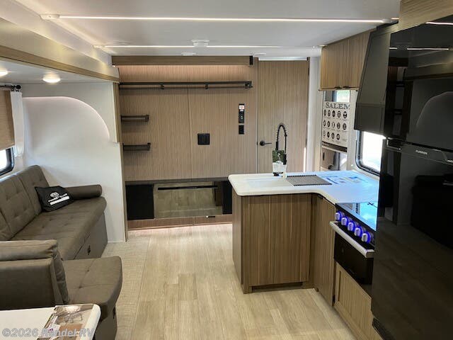 With the capacity to sleep up to 10 people, the Salem 28DBUD is ideal for large families or groups. The RV boasts a VERSA-TILT custom king bed in the front private bedroom, accompanied by double-over bunk beds for the kids. The versatile lounge and flex dinette can easily accommodate meal times or serve as a workspace during downtime, ensuring no one feels cramped on the road.