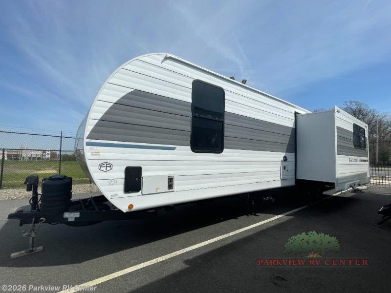 The Salem travel trailers are packed with hassle-free camping amenities! There are a variety of floorplans to choose from between three different regions. The heated and enclosed Accessibelly will help protect against the elements and debris during transport, and the exterior retro/metal redesign is sure to be eye-catching! There are stylish roller shades inside, along with updated backsplash, elegant curtain rods and curtains, plus many more interior comforts! Choose a Salem travel trailer today for quality and value!