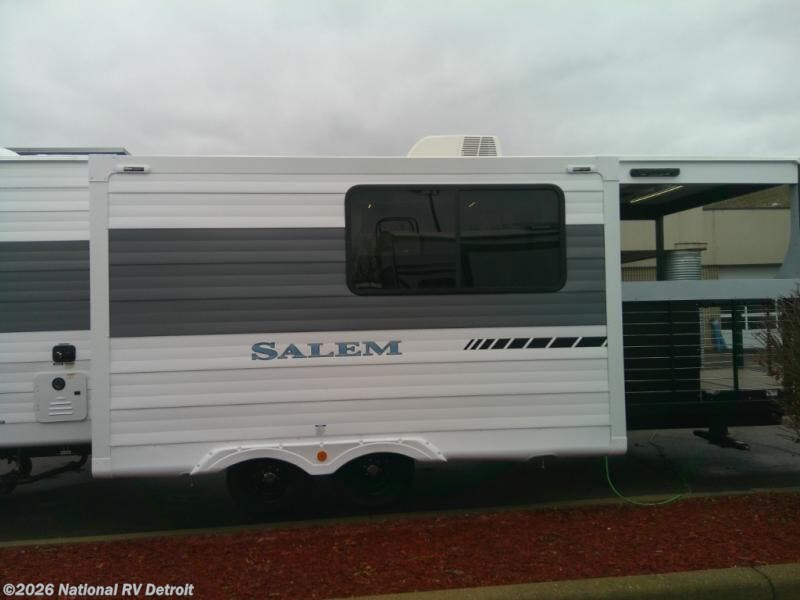 The Salem travel trailers are packed with hassle-free camping amenities! There are a variety of floorplans to choose from between three different regions. The heated and enclosed Accessibelly will help protect against the elements and debris during transport, and the exterior retro/metal redesign is sure to be eye-catching! There are stylish roller shades inside, along with updated backsplash, elegant curtain rods and curtains, plus many more interior comforts! Choose a Salem travel trailer today for quality and value!