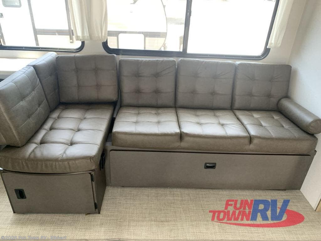 After you've had a long day of sightseeing and adventuring, you will certainly appreciate having this Salem travel trailer to come back to! If you aren't ready to stay indoors for the night, you can keep the party going outside under the 18' awning, and if you need any extra lawn chairs, you can grab them from the pass-through storage compartment. And, you don't have to stop enjoying a good fire just because you have to go inside because the interior fireplace will provide great ambiance. There are dual entry doors which will definitely come in handy when camping with a large group, and there is plenty of seating space on the booth dinette and Versa lounge in the main living area.