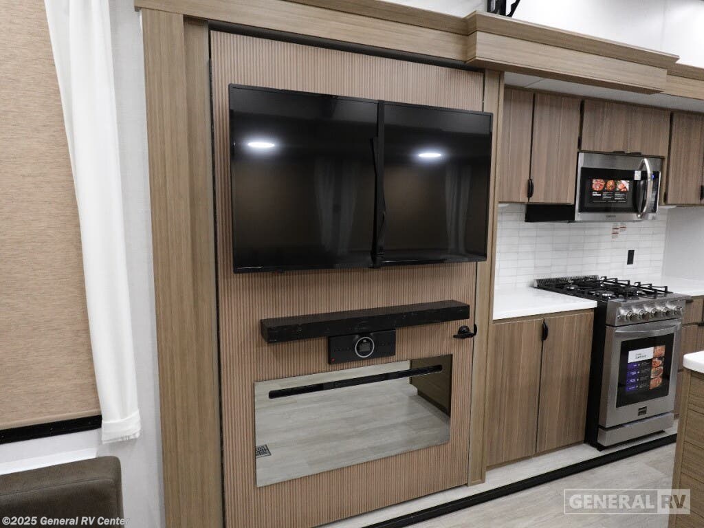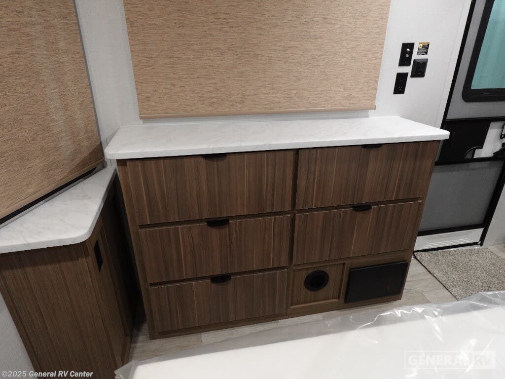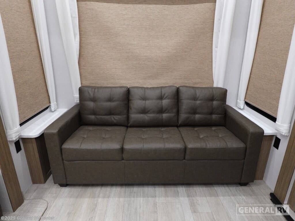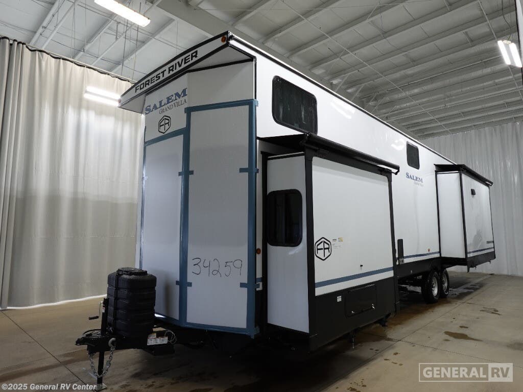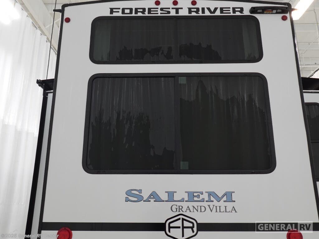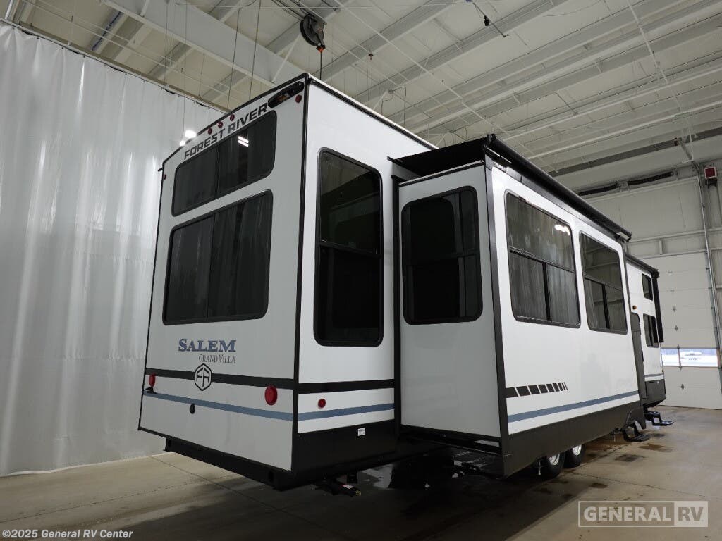 Experience the ultimate in comfort and luxury with the 2025 Forest River Salem Grand Villa 42DL. This spacious RV is designed to accommodate up to seven sleepers, making it perfect for family adventures or entertaining guests. The inviting front and center bedroom features a plush queen bed, while three cozy bunks offer additional sleeping space. The convertible bed in the living area adds versatility, ensuring everyone has a comfortable spot to rest. The rear living area, with its panoramic windows, invites you to relax and enjoy stunning views, while the center kitchen equipped with modern amenities makes meal preparation a breeze. The Salem Grand Villa 42DL is not just about space; it's about thoughtful design. The center bath with a walk-in shower provides convenience, and the RV is prepped for a washer and dryer, adding to its residential feel. The full-size electric refrigerator and ample storage ensure you can bring along all the essentials. Step outside under the 20-foot powered retractable awning for some shade, or enjoy the interior's climate-controlled comfort. With three slides and a robust construction, this RV offers both luxury and durability for your travels. For more details and to experience this model firsthand, visit your nearest General RV dealership.