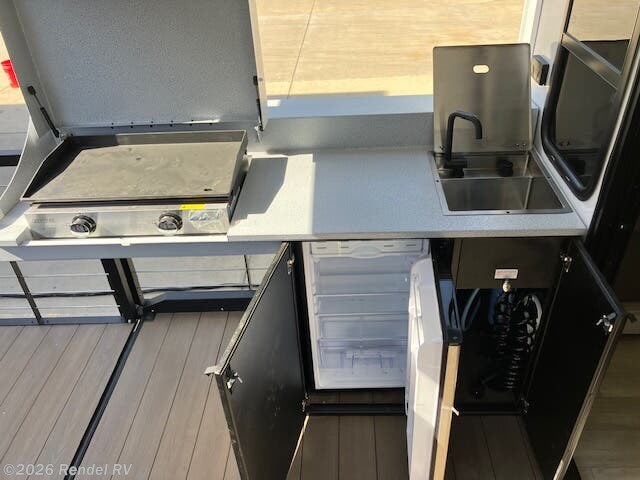 Awning, Exterior Speakers, Leveling Jacks, Outside Kitchen, Skylight, Slideout -