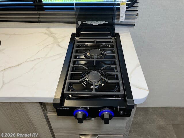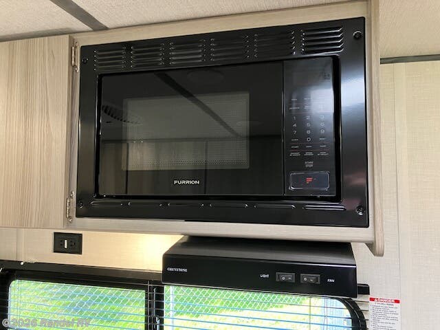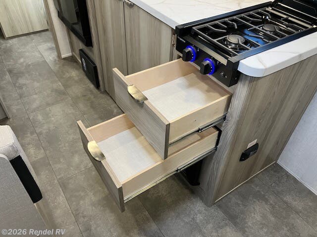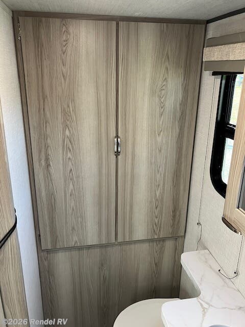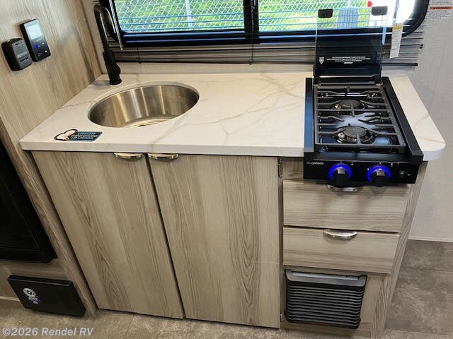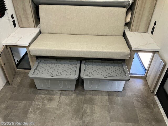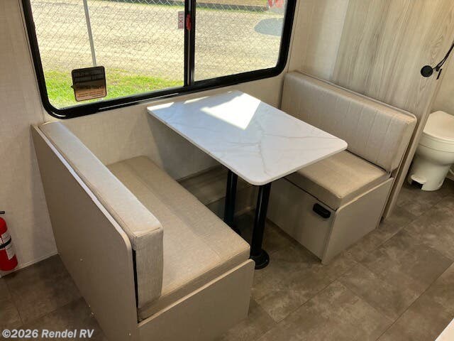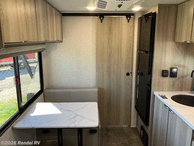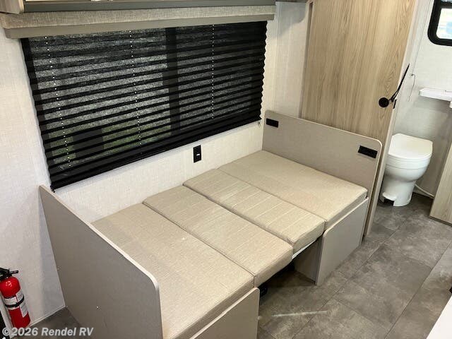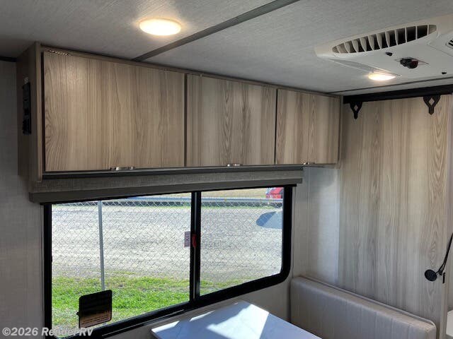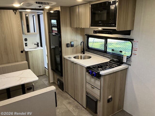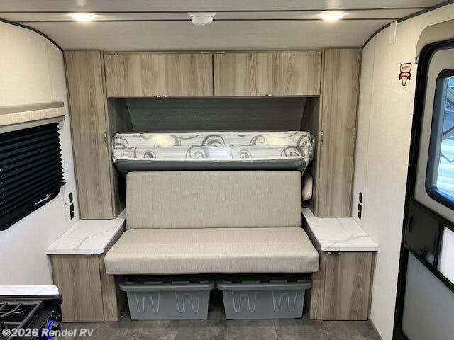 The 167RBK model efficiently utilizes its space with a unique Mid Kitchen floor plan that fits a queen bed in the front, which conveniently flips up to create a cozy sofa during the day. Enjoy breakfast with your loved ones at the booth dinette while admiring the stunning views through the expansive rear windows. A spacious rear bathroom equipped with a linen cabinet provides additional room and convenience.