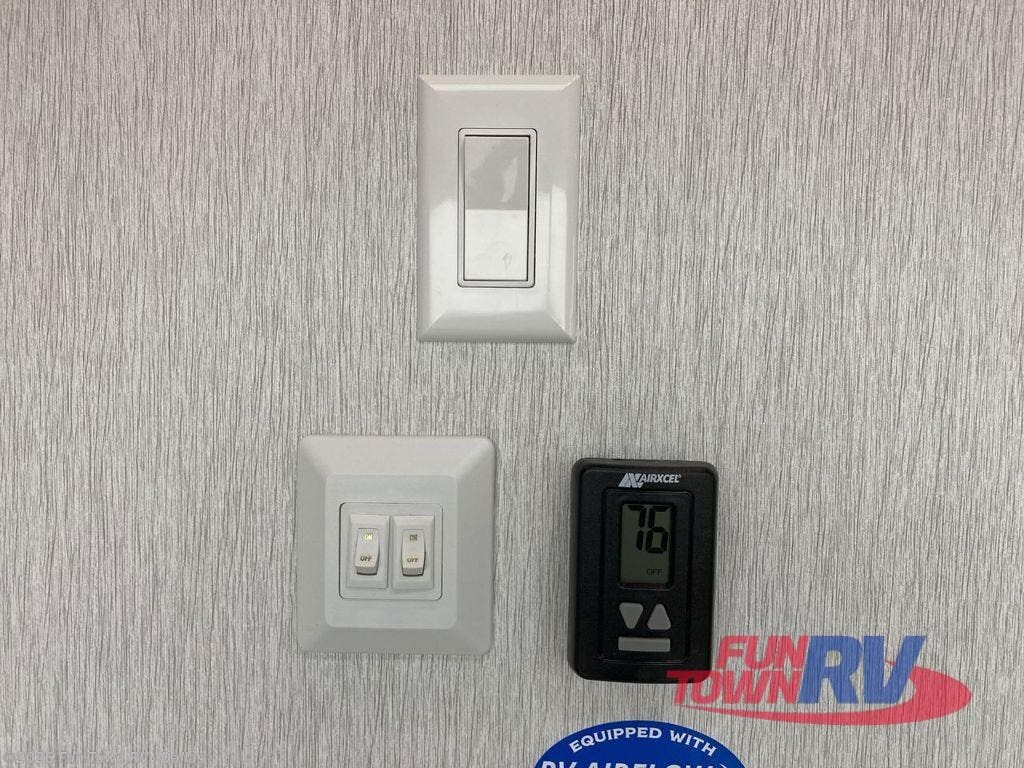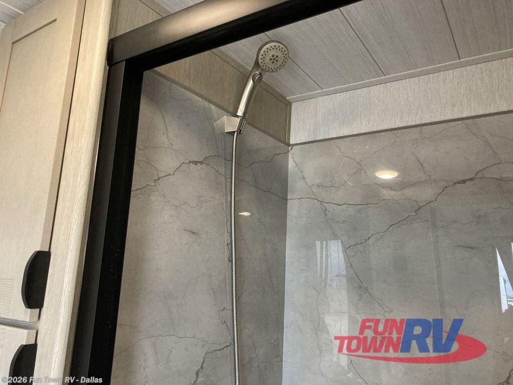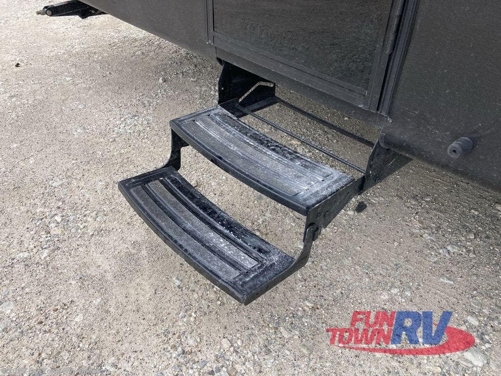 With any Salem Grand Villa destination trailer by Forest River, you can call home wherever you park it! There is a heated and enclosed Accessibelly for added protection in all seasons, LED "Blade Lighting" under the awning, Lippert On-The-Go ladder prep, plus many more exterior conveniences. Elegant curtain rods and curtains will have you feeling right at home, along with stainless steel kitchen appliances, stylish roller shades, and enhanced floating shelves for added storage. Each model includes a central vacuum with a sweep attachment to help keep your space tidy, a 60k on-demand tankless water heater for endless hot showers, a JBL 3-Zone media center, plus available options to further customize your trailer.