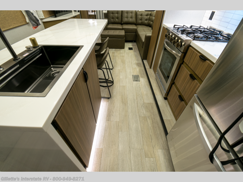 With any Salem Grand Villa destination trailer by Forest River, you can call home wherever you park it! There is a heated and enclosed Accessibelly for added protection in all seasons, LED "Blade Lighting" under the awning, Lippert On-The-Go ladder prep, plus many more exterior conveniences. Elegant curtain rods and curtains will have you feeling right at home, along with stainless steel kitchen appliances, stylish roller shades, and enhanced floating shelves for added storage. Each model includes a central vacuum with a sweep attachment to help keep your space tidy, a 60k on-demand tankless water heater for endless hot showers, a JBL 3-Zone media center, plus available options to further customize your trailer.