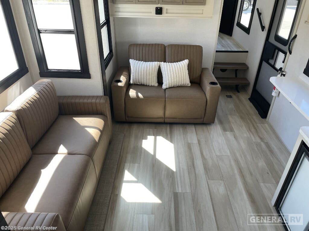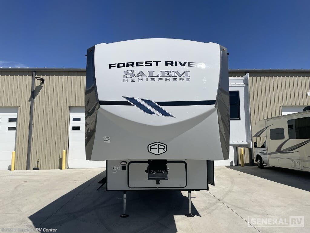 Experience the ultimate in luxury and comfort with the 2025 Forest River Salem Hemisphere 328BH. This stunning RV is designed to cater to all your travel needs, offering ample space and modern amenities for up to seven guests. The spacious interior features a center kitchen and living area, complete with a full-size electric refrigerator and a cozy tri-fold sofa, perfect for entertaining or relaxing after a day of adventure. The fixed bar top and beverage center add a touch of elegance, making it easy to enjoy a casual meal or a refreshing drink. The Salem Hemisphere 328BH boasts a thoughtfully designed floorplan with a front king bedroom and a rear bunkhouse, providing privacy and comfort for everyone on board. The walk-in residential-style shower with a skylight in the center bath ensures a refreshing experience, while the washer/dryer prep offers added convenience for extended trips. With two powered retractable awnings and XL Texas-sized pass-thru storage, this RV is equipped for both relaxation and practicality, making it the perfect choice for family vacations or a getaway with friends. For more information, visit your nearest General RV dealership and discover how the Salem Hemisphere 328BH can elevate your travel adventures.