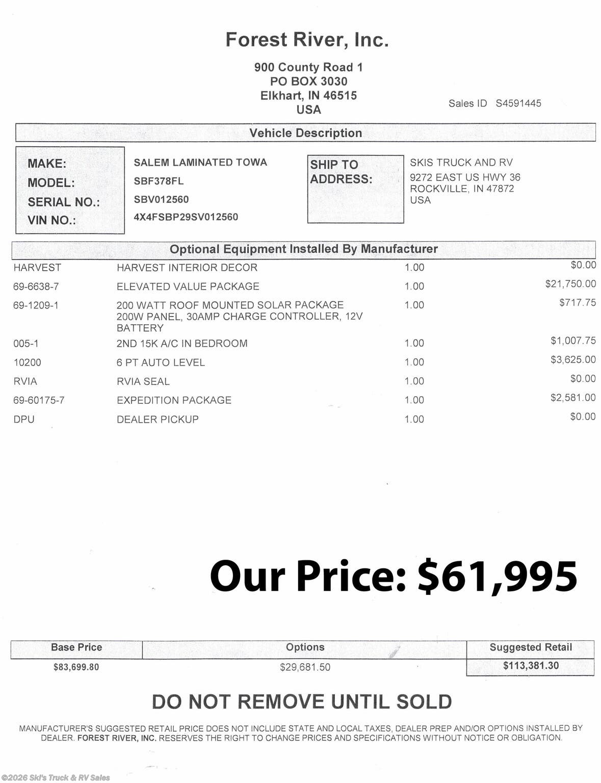 - Price $61,995.00
