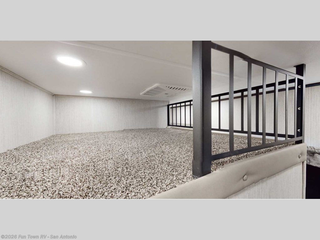 Wow! Check out this fifth wheel with a full loft for the little ones, plus a half loft that can become a play room/storage room. The main floor includes five slides for maximum space, a front living area with dual hide-a-bed sofas, plus an entertainment center with a 50" flat screen TV for movie nights! Once your guests have converted the living room to their bedroom at night, you can take the rear private bedroom. There is a king bed slide out here, plus a wardrobe, plus a closet with washer and dryer prep for full-time living. The full bath is easily accessible for everyone, and the middle kitchen will be a favorite with the chef of your group. Here, you'll find a 17 cu. ft. 12V refrigerator, an island, tons of counter space, plus a hutch to display nice dishes, and a pantry for dry goods. Don't let this fifth wheel slip away!