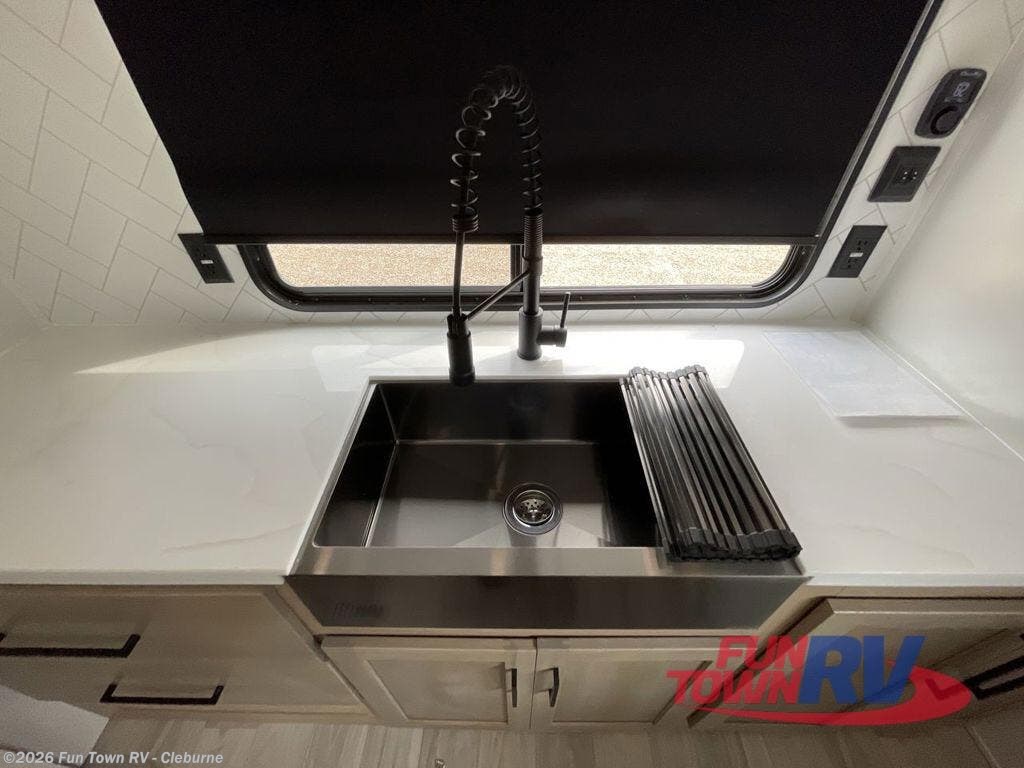 The Sandpiper Destination Trailers by Forest River are ready for extended stays at the location of your choice! The cambered powder coated frame with rust prohibitor will help extend the life of your RV and the Underbelly Armor will protect your trailer and provide better insulation. There are also color matched exterior fiberglass sidewalls outside, along with rain gutters with extra long drip spouts to prevent black streaking, and an exterior porch light just like at home. The Destination Package includes features to make your trips hassle-free, like the two 15,000 BTU A/C units, and on-demand water heater, and Chef Collection three burner 24" range. A commercial style kitchen faucet and designer backsplash is included with the Extended Stay Package, as well as solid surface countertops, and a stainless steel apron sink with a strainer to name a few comforts. Available options include a central vacuum system, stabilizer jacks, plus dual pane windows and more!
