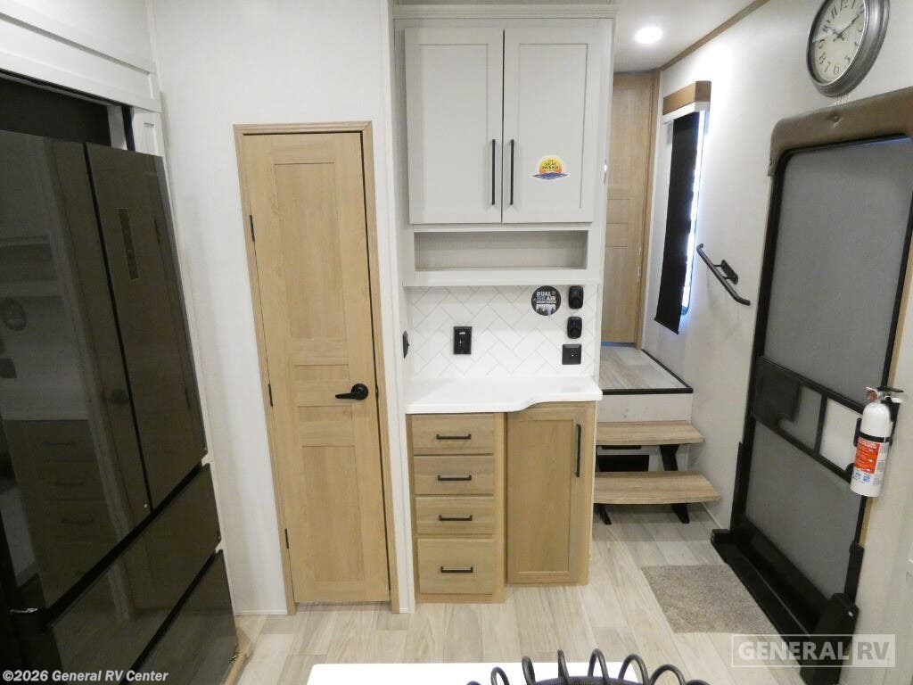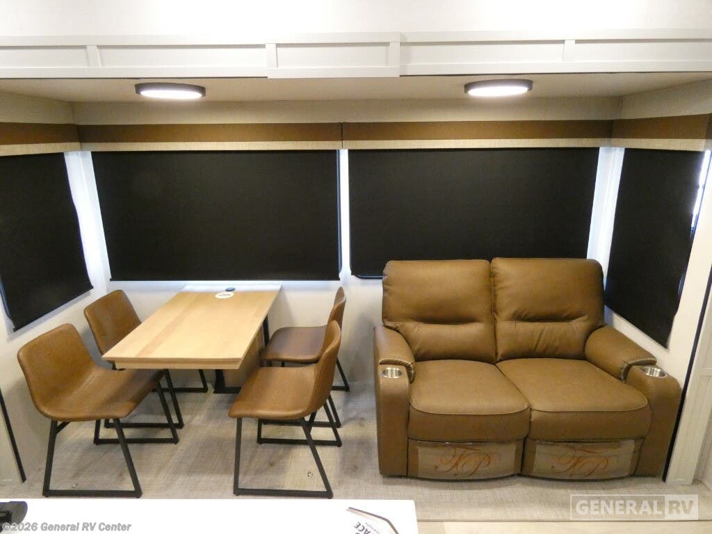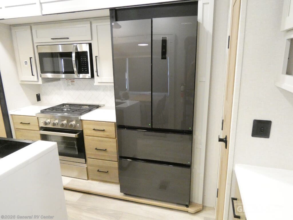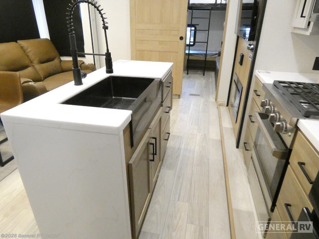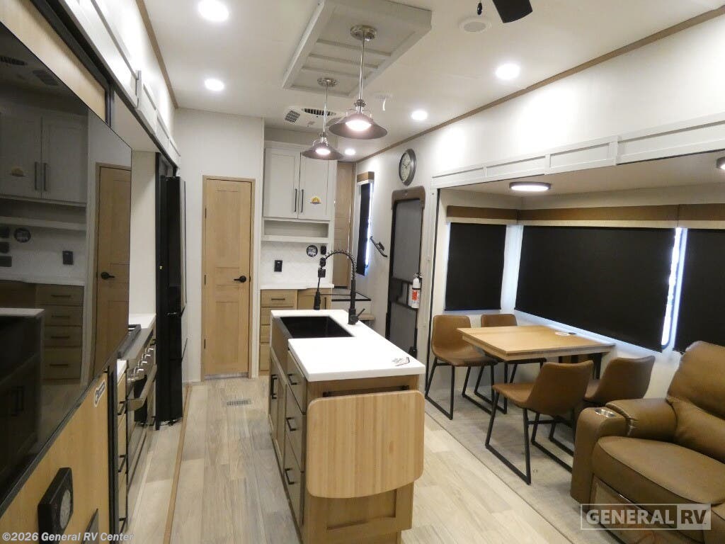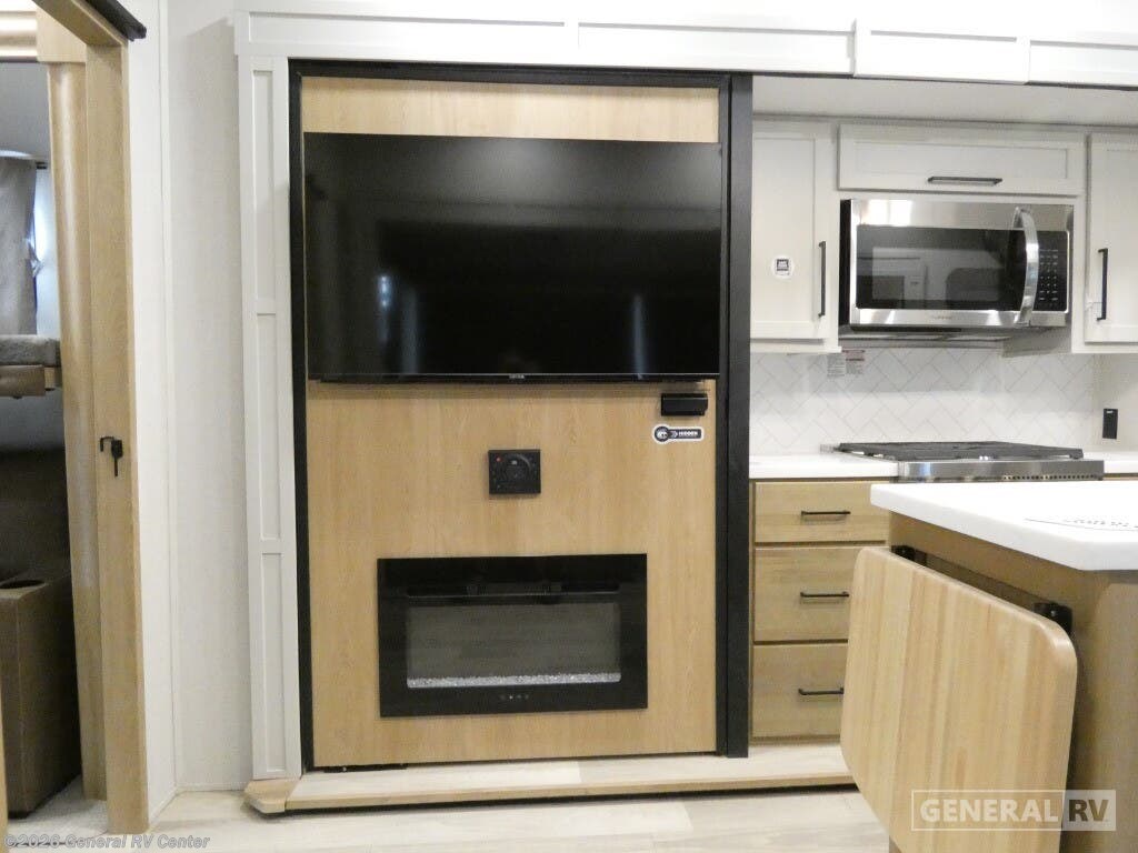 Experience the pinnacle of luxury and convenience with the 2025 Forest River Sierra 3880BH. This stunning RV is designed for families who crave adventure without sacrificing comfort. With the ability to sleep up to seven people, thanks to a king-sized bed, a double bed, and a convertible option, this RV ensures everyone has their own space to unwind. The bunkhouse, complete with a 54" x 74" bunk above and a hide-a-bed sofa, offers a perfect retreat for kids or guests, while the main living area boasts a cozy fireplace and theater seating for ultimate relaxation. The Sierra 3880BH's kitchen is a chef's dream, featuring a full-size electric refrigerator and ample storage, including a hidden pantry. The center kitchen layout, complemented by pendant lights and a coffee bar, makes meal preparation a joy. Outside, enjoy the convenience of two powered retractable awnings, providing shade and comfort for outdoor gatherings. With a robust fresh water capacity of 50 gallons and extensive gray water storage, your adventures can be as long and as far as you desire. For more information and to truly appreciate this incredible RV, visit your nearest General RV Dealership.