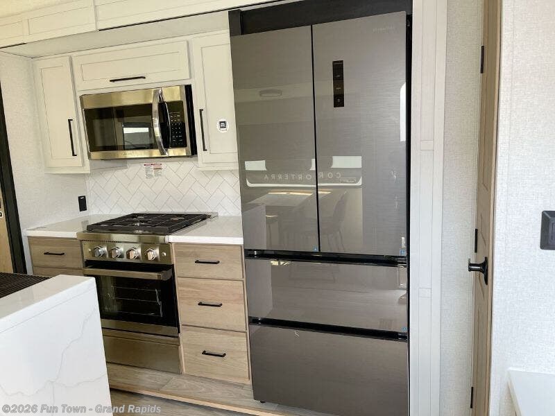 Enjoy your RV travels in style with this 2025 Forest River Sierra 4002FB. This 2025 Forest River Sierra 4002FB welcomes you into the Forest River family! This rig cuts no corners on space, expanding into a massive living area with 4 slides. Go longer without filling up thanks to the 50 gallon fresh water tanks.