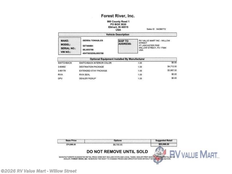 Request More Info on this 2025 Forest River Sierra Destination Trailers 400BH Offered for sale by RV Value Mart - Willow Street