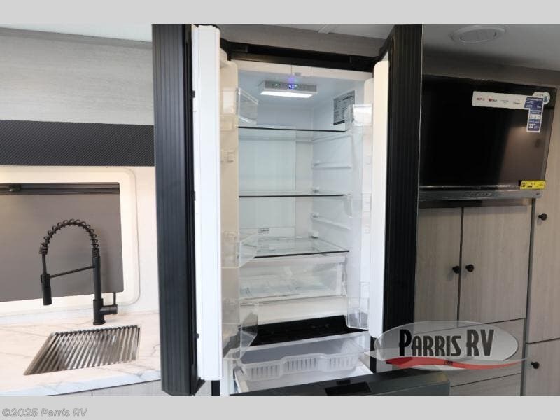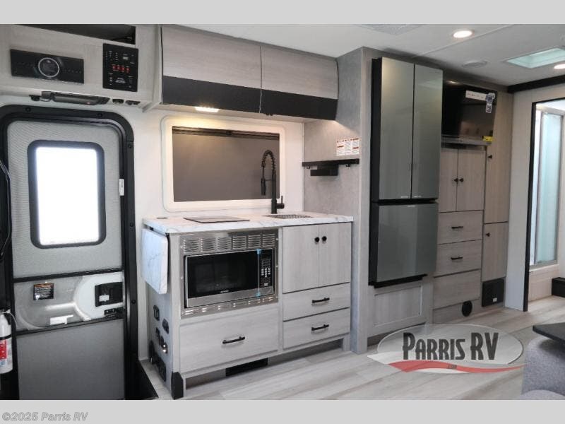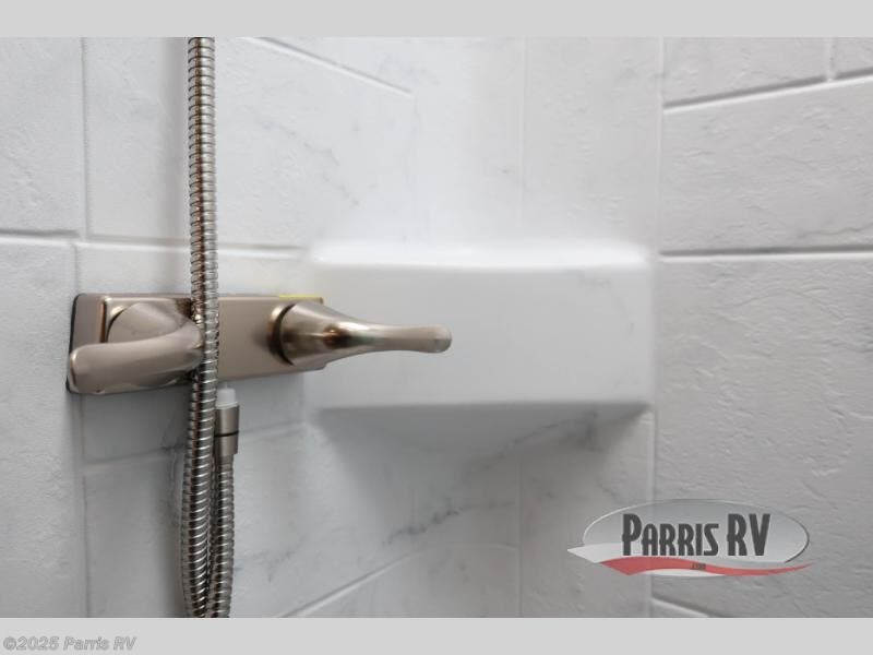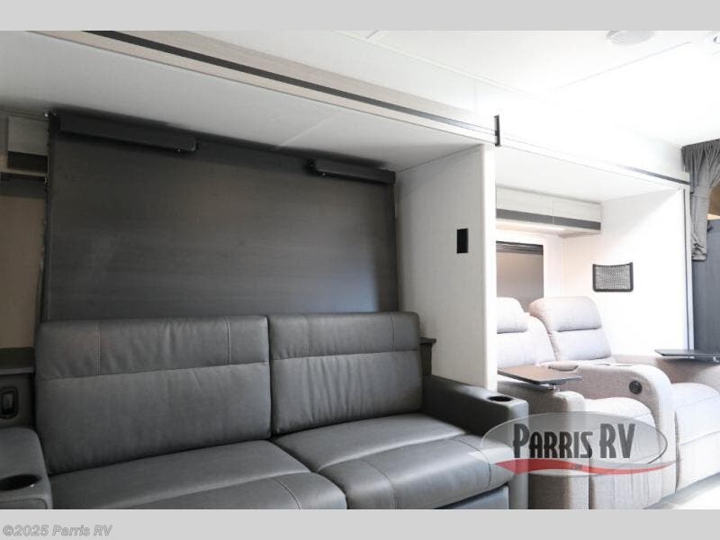 Head out on a luxurious vacation in this motorhome! Stay squeaky clean with a full rear bathroom that has a 24" x 36" shower featuring an oxygen-infused shower head with flexible extension and a skylight above for added natural lighting. The 60" x 75" queen Murphy bed creates versatility by offering a comfortable place to lay your head at night and a sofa with a removable table to enjoy meals during the day. Speaking of meals, you can prepare your best home cooked ones using the two burner cooktop and flip-up countertop. Next to the 10.7 cu. ft. refrigerator there is a 12V TV with drawers below and hidden storage behind it, plus a closet to keep your clothes tidy!