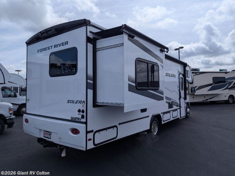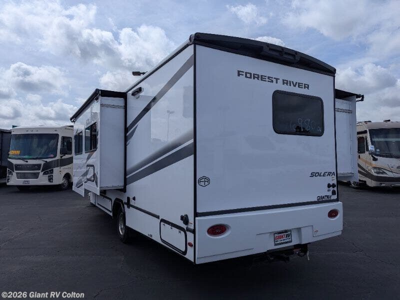 Get ready for road-trip luxury with the 2025 Forest River Solera 27DSE Class C Motorhome at Giant RV in California, a 29’4” luxury RV sleeping up to 8, featuring a bunk-over-cab, a rear queen bed, a U-shaped dinette slide, and a full bath to refresh. With a Ford E450 chassis and 200W solar, it’s built for epic California RV camping!