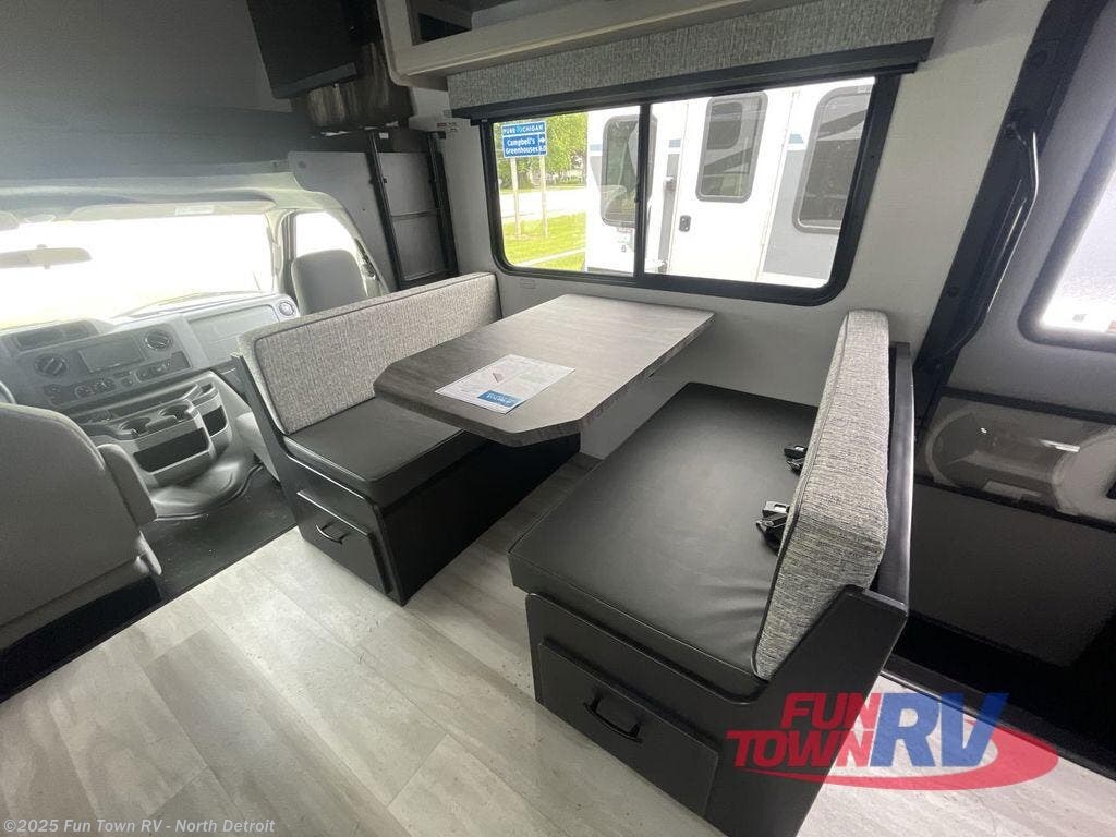 Each one of these Forest River Solera Class C gas and diesel motorhomes proclaim the style of a new generation! There is a convenient keyless entry, a backup and side view camera system, and a 10" in-dash touch screen Apple Carplay/Android Auto radio. The Ford E350/Chevy 3500, Ford E450 or Mercedes-Benz Sprinter 3500 chassis also help with the smooth ride. Each model includes aluminum framed laminated sidewalls, superlite composite substrate, and a gel coat exterior fiberglass for added durability. Inside, you will enjoy the MCD roller shades, residential style furniture with Fortress stain resistant fabrics, soft touch self-closing drawer guides, and many more comforts. And you can stay connected where ever you go with the Winegard Air 360+ antenna with Gateway 4G WiFi capability.