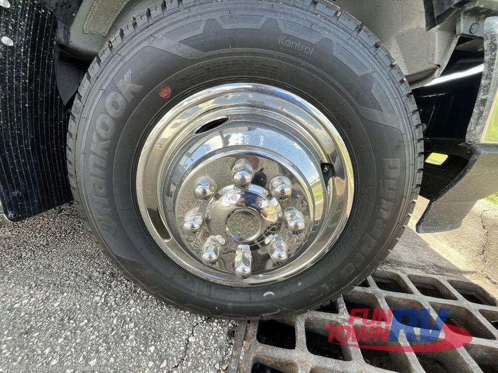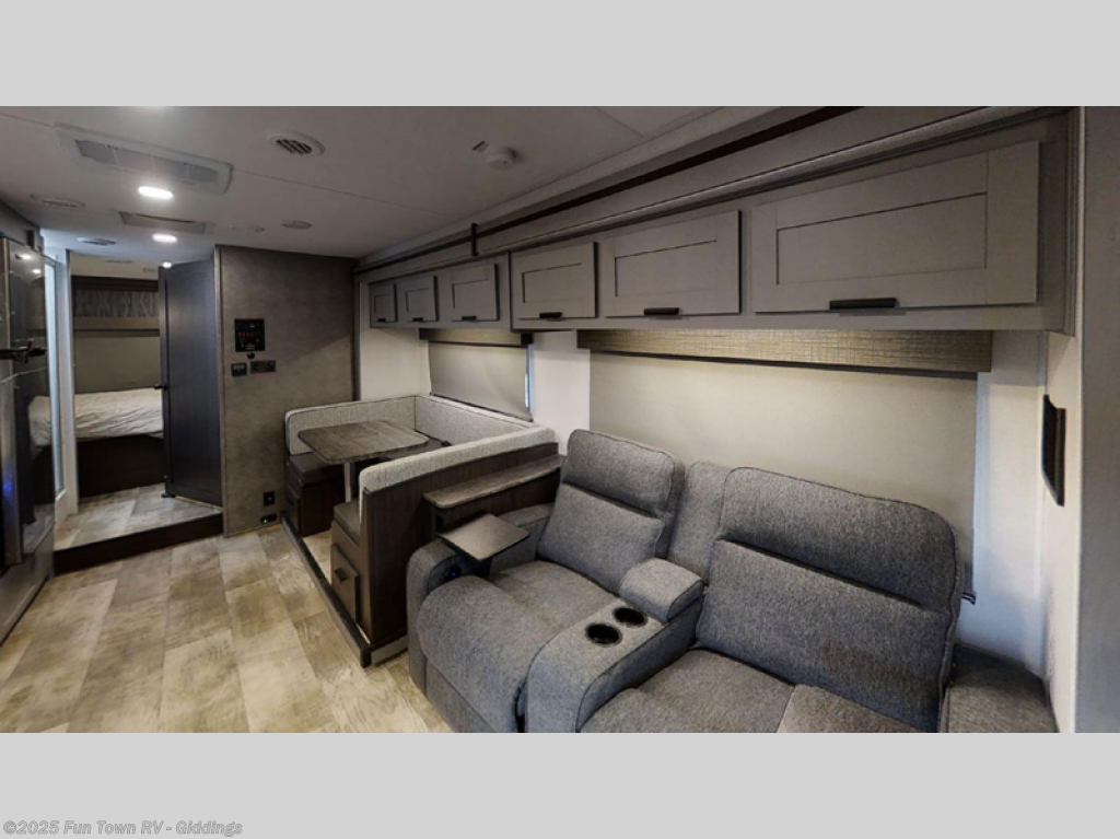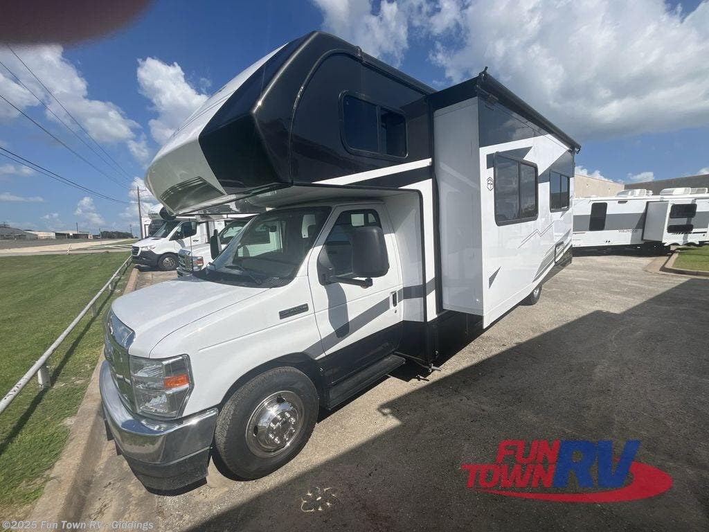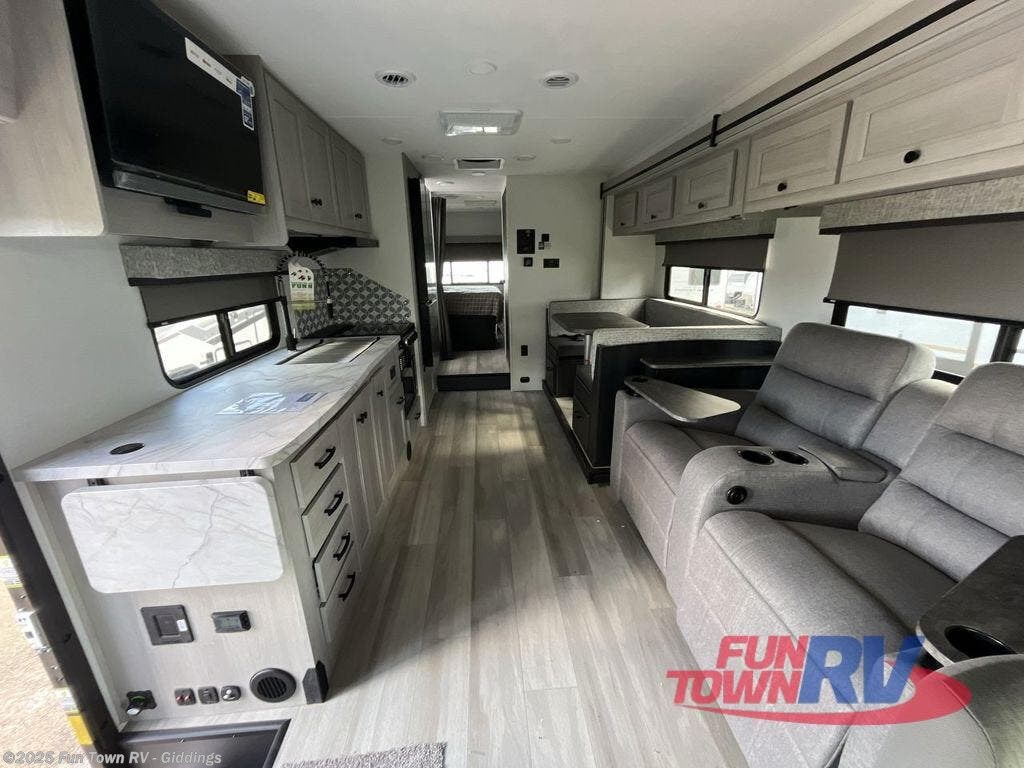 Pack your bags and pick your favorite destination then head out in this motorhome! The rear private bedroom has a 60" x 74" queen bed slide for more interior space, and a linen closet with wardrobes on either side of it. There is also a split-style bath with a private toilet and sink, and the shower is right across the hall. Prepare your best home cooked meals using the three burner cooktop, enjoy dining at the U-shaped dinette, and store any leftovers in the 10.7 cu. ft. 12V refrigerator. You will also appreciate the flip-up countertop for more meal prepping space. Relax each evening on the 66" sofa, or you can replace it for the optional power theater seating. There is even a 60" x 80" bunk over the cab for extra sleeping or storage space!