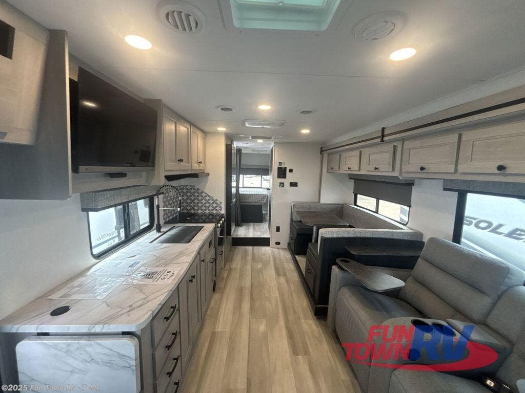 Each one of these Forest River Solera Class C gas and diesel motorhomes proclaim the style of a new generation! There is a convenient keyless entry, a backup and side view camera system, and a 10" in-dash touch screen Apple Carplay/Android Auto radio. The Ford E350/Chevy 3500, Ford E450 or Mercedes-Benz Sprinter 3500 chassis also help with the smooth ride. Each model includes aluminum framed laminated sidewalls, superlite composite substrate, and a gel coat exterior fiberglass for added durability. Inside, you will enjoy the MCD roller shades, residential style furniture with Fortress stain resistant fabrics, soft touch self-closing drawer guides, and many more comforts. And you can stay connected where ever you go with the Winegard Air 360+ antenna with Gateway 4G WiFi capability.
