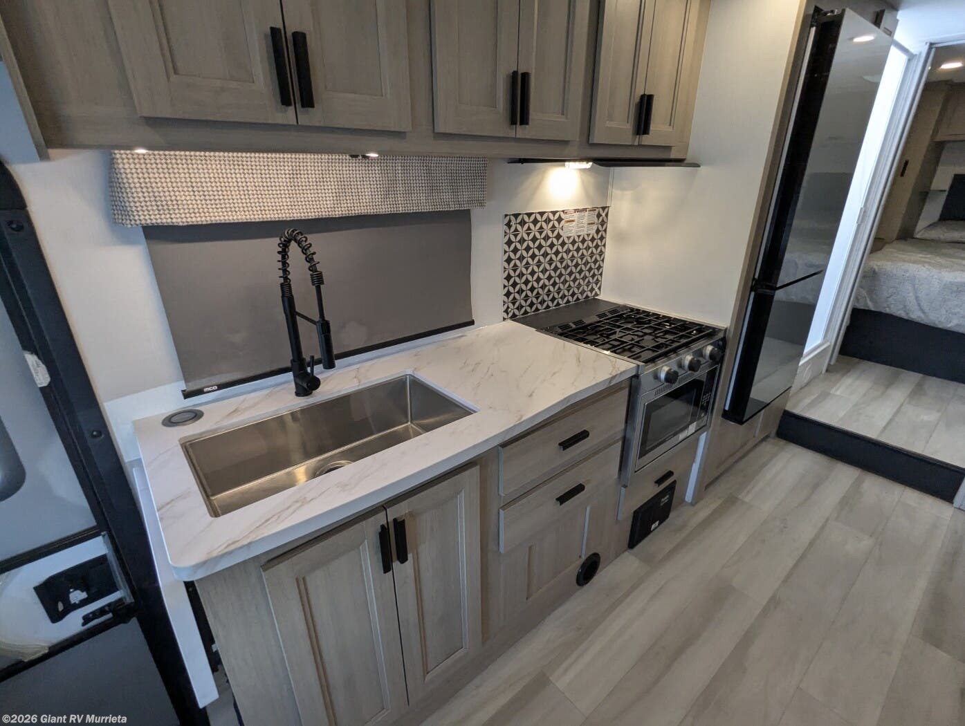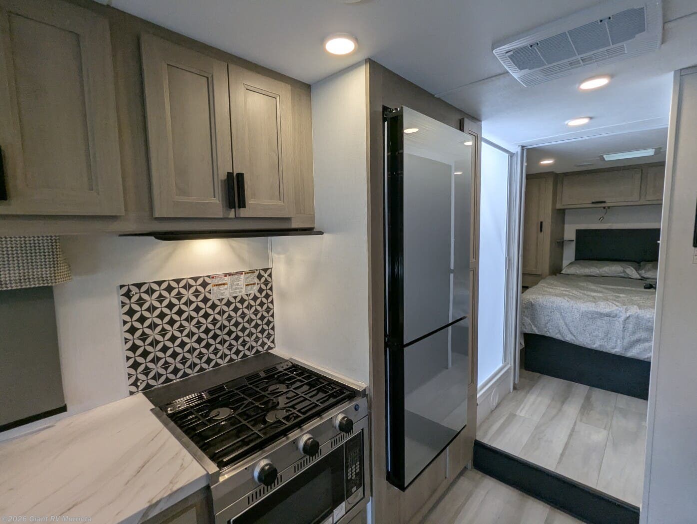 - Modern Kitchen: 10.7 cu. ft. 12V fridge keeps food fresh, 3-burner cooktop with oven for tasty meals, microwave for quick snacks.